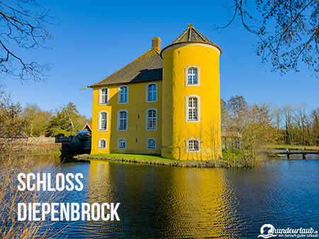 Das Schloss ist derzeit im Privatbesitz und kann nur von außen besichtigt werden. Rund um das Haus Diepenbrock kannst du mit deinem Hund auch eine kleine Wanderung über die Schlossallee, dann links parallel zur Vardingholter Str. und den Waldweg links zum Schloss zurück unternehmen. Wie wäre es anschließend mit einer Stärkung im Restaurant?