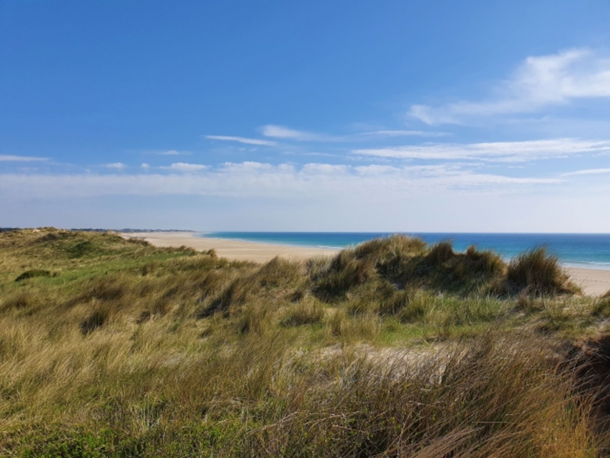 Es ist eines unserer insgesamt drei Häuser, die wir in der Manche auf der Halbinsel Cotentin vermieten und liegt ca 700m vom Strand in den Dünen in Alleinlage.