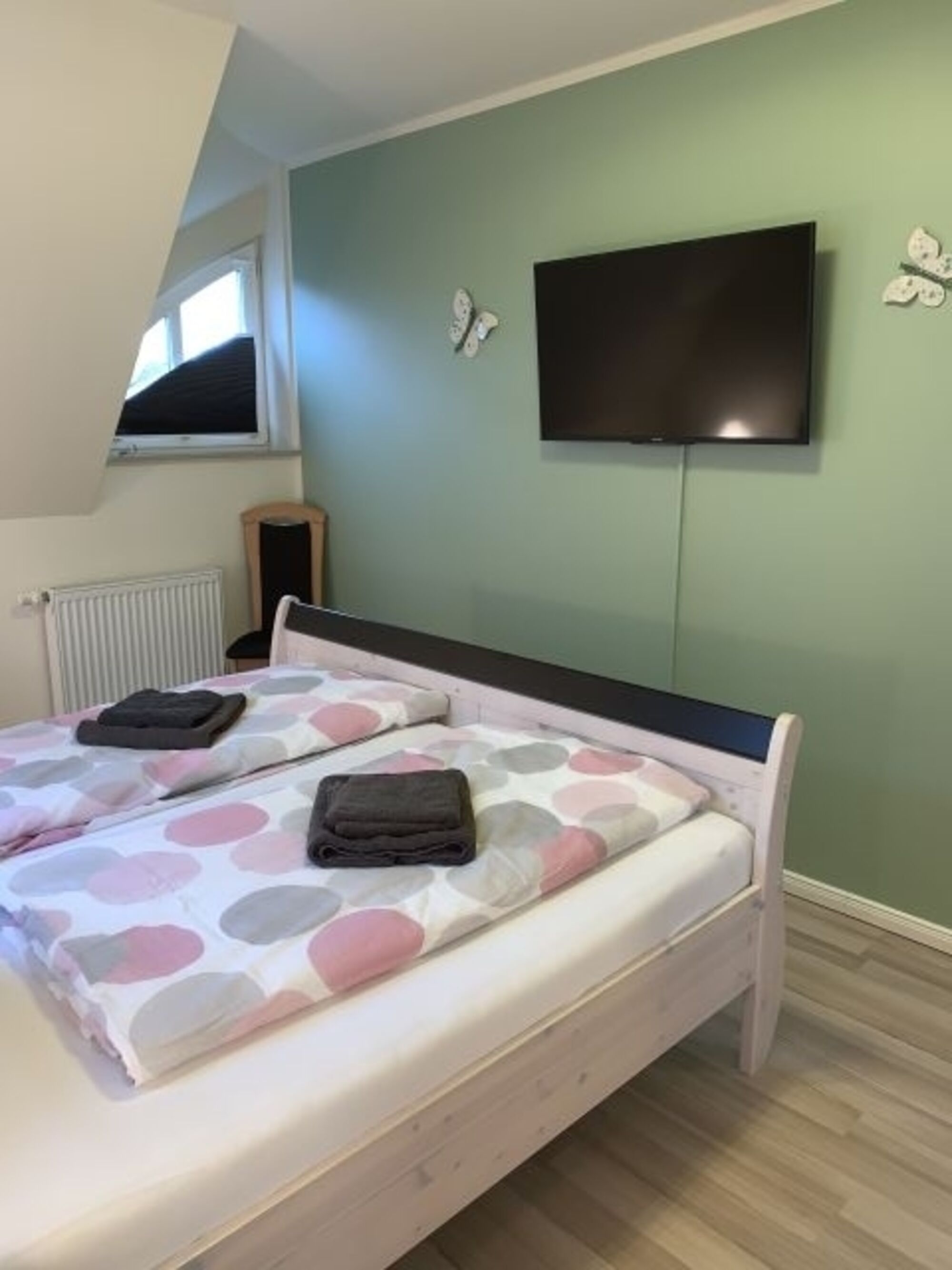 1 x 42 Zoll TV im grünen Schlafzimmer