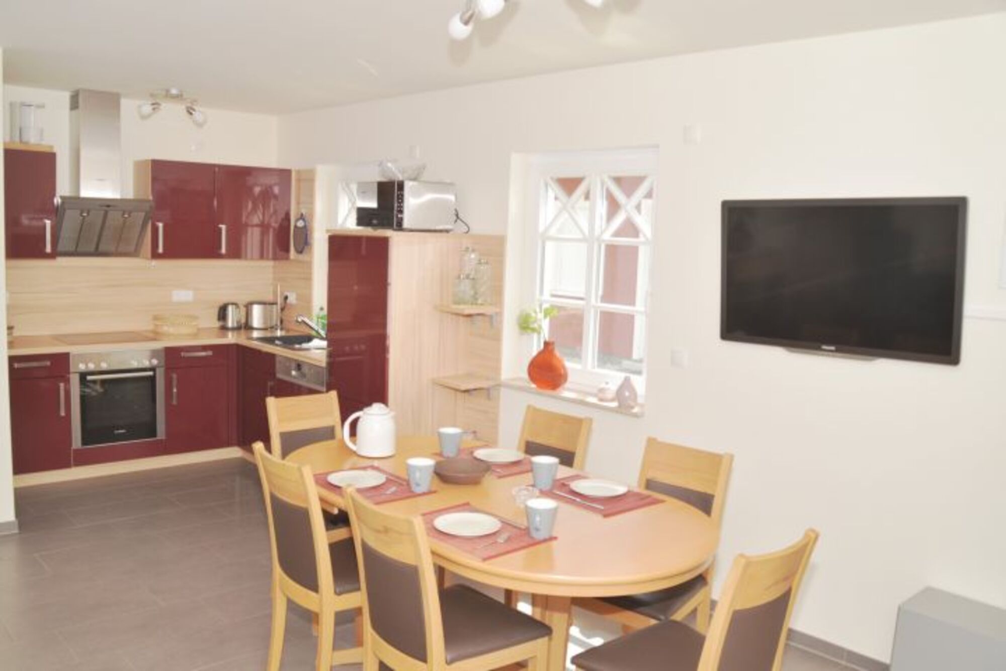 4-Platten Herd, Cerankochfeld, Dunstabzugshaube, Gefrierschrank, Kaffeevollautomat, Nespresso-Automat, Mixer, Korkenzieher / Flaschenöffner, Essplatz in der Küche, TV in der Küche