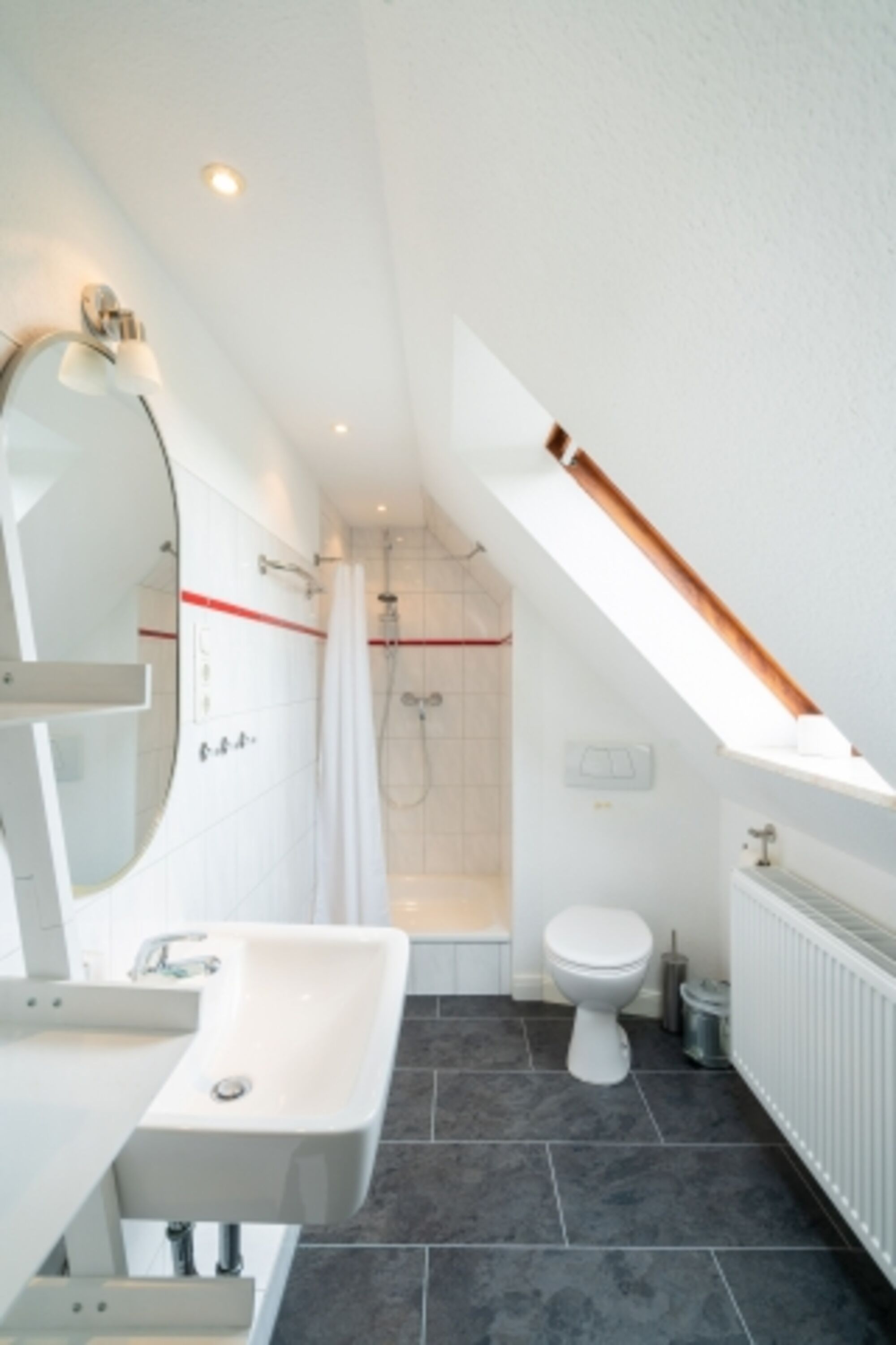 Ebenerdig befindet sich ein komfortables Wannenbad mit Duschmöglichkeit und ein Doppelschlafzimmer. Im oberen Bereich 2 weitere Zimmer und ein Duschbad. Der Wellnessbereich für all unsere Gäste auf dem Hof lässt mit seiner finnischen Sauna und Infrarotkabine keine Wünsche offen.