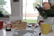 Die Haus ist top für Fellnasen mit nordisch netter Inneneinrichtung. Das Wohnzimmer mit seinem Kaminofen lädt zum Entspannen ein oder Sie machen einen schönen Filmabend auf dem Sofa. Am großen Tisch kann gegessen oder auch gespielt werden. Aus der Küche gelangt man direkt auf eine Terrasse mit Gartenmöbeln und auch Liegen, in dem mit Staketen eingezäunten großen Garten können Sie Ihre Hunde herumtollen lassen und bei Bedarf auch gleich abduschen.