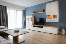 Das hell und modern eingerichtete Wohnzimmer lädt zum Wohlfühlen ein. Für Regentage steht Ihnen ein großer Flachbildfernseher und eine Playstation 3 mit Bluray Player zur Verfügung. Einige Spiele und DVDs befinden sich im Ferienhaus.