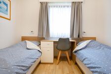 Das dritte Schlafzimmer ist mit Zwei Einzelbetten, Schreibtisch und Kleiderschrank ausgestattet.