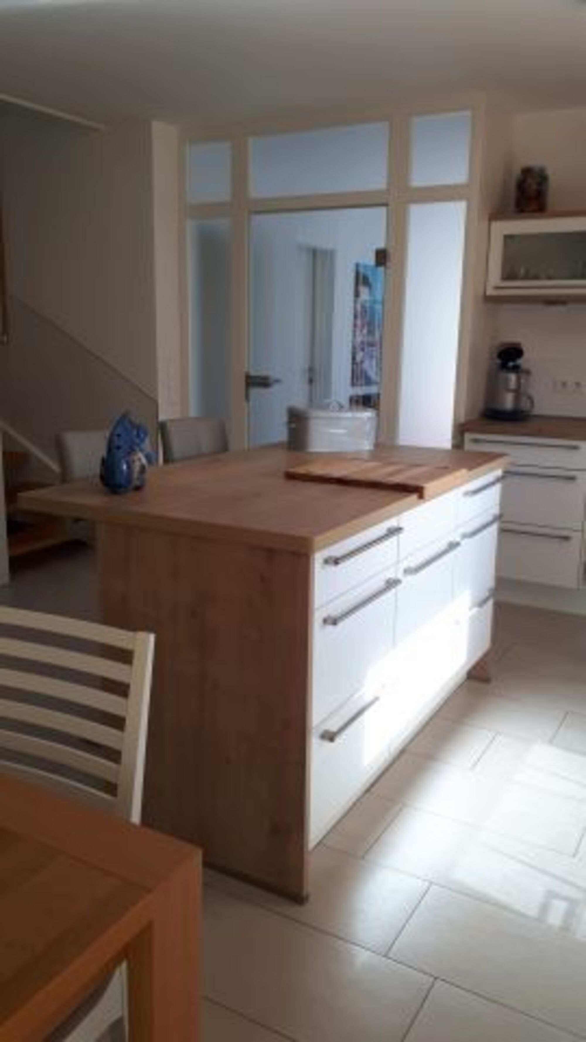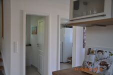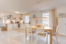4-Platten Herd, Cerankochfeld, Dunstabzugshaube, Kühlschrank mit Gefrierfach, Kaffeevollautomat, Senseo-Kaffeeautomat, Tassimo-Kaffeautomat, Eierkocher, Küchenmaschine, Mixer, Korkenzieher / Flaschenöffner, Mülltüten, Essplatz in der Küche, TV in der Küche