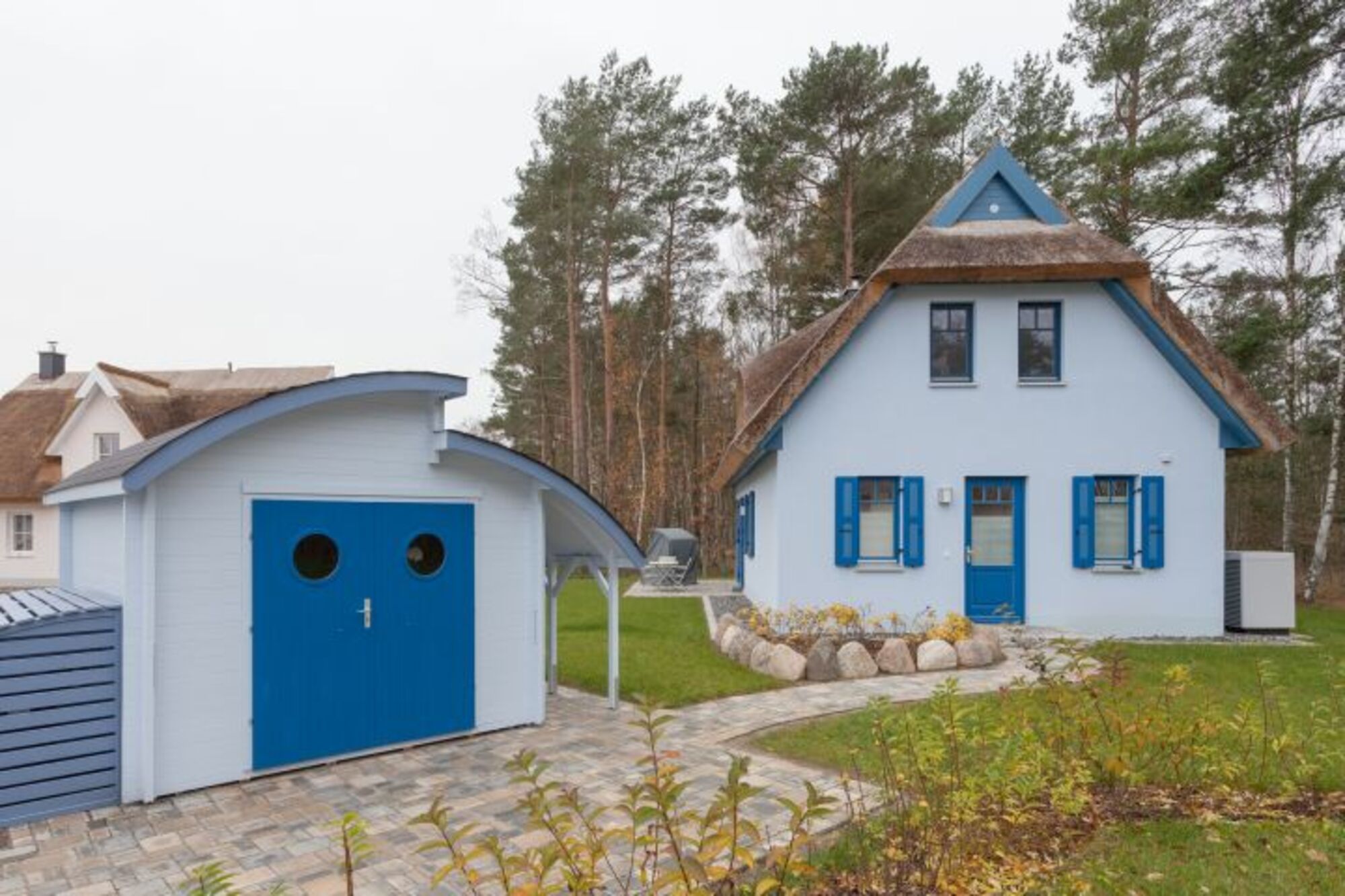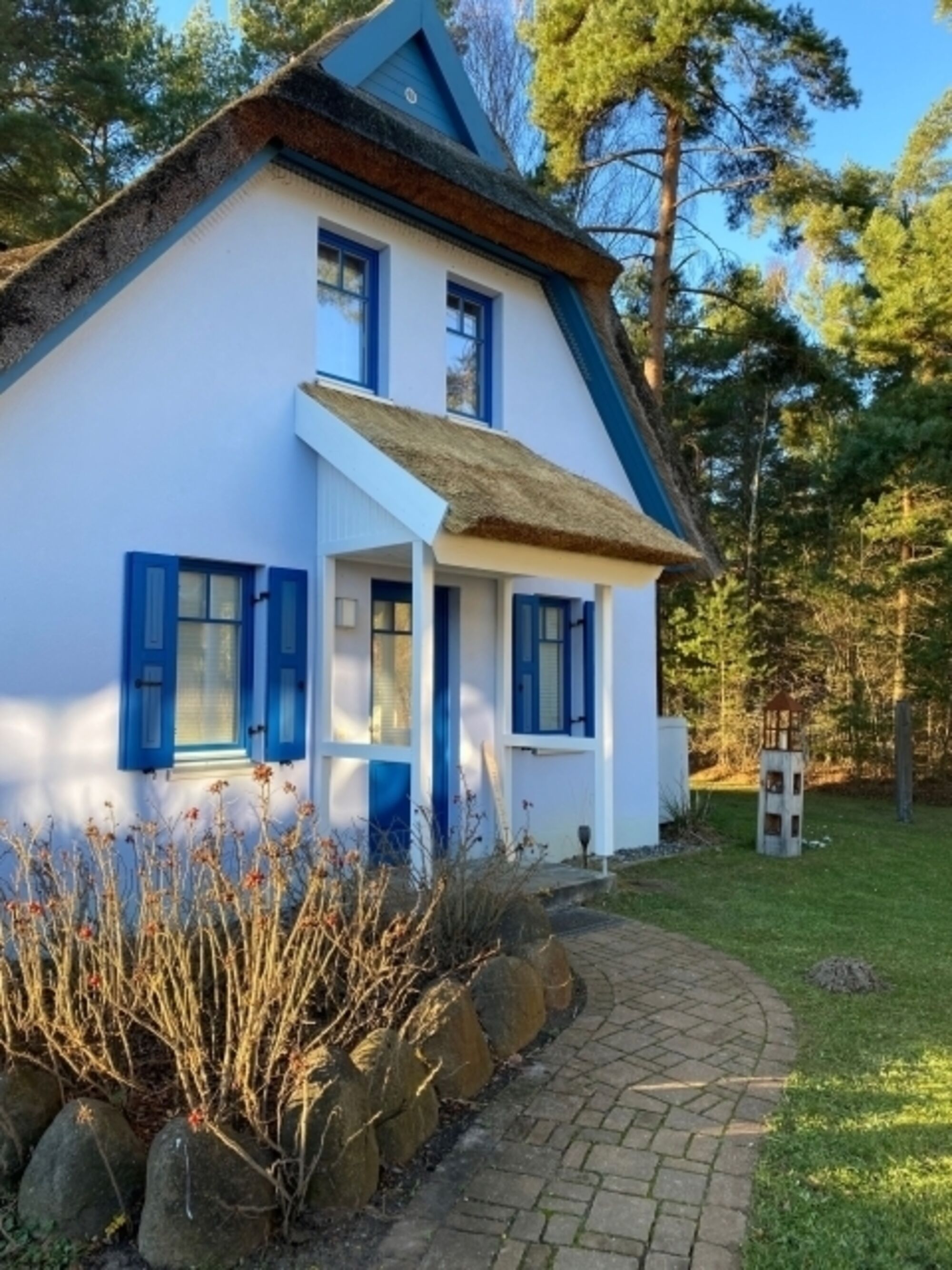 Komfortables Reetdachhaus mit Sauna, Kaminofen, gehobener Ausstattung, großes Grundstück (1200 qm), 2 Terrassen mit Sitzmöbeln, 2 Pkw-Stellplätze.