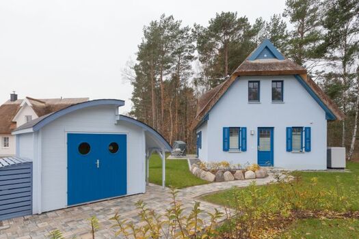 Ort: Glowe. Schöne, familiäre Ferienhaussiedlung am Dünenwald. Ostseestrand 300 Meter. Ortsmitte mit Geschäften, Restaurants. Kulturelles: Kap Arkona mit denkmalgeschützten Leuchttürmen. Fischerdorf Vitt mit Uferkapelle. Schloss Spyker. Nationalpark Jasmund mit Kreidefelsen, Hertha-See. Hafen Sassnitz: Schiffsfahrten zum Königsstuhl, Kap Arkona, nach Usedom, Yachthafen mit Bootsverleih 1,9 Kilometer. Jasmar-Therme Neddesitz 7,9 Kilometer. Kap Arkona 19 Kilometer.