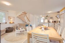 Ferienhaus 2-7 Personen: Schönes 3-Zimmerhaus mit 100 qm Wohnfläche über 2 Etagen. Parterre: Gemütlicher Wohn-/Essraum mit Kaminofen, Schlafcouch, Sat-TV, Radio-CD, Esstisch, sehr gut ausgestatteter Einbauküche (Backofen, Spülmaschine, Mikrowelle). Bad: Sauna, Du, Wb, WC. Abstellraum mit Waschmaschine. 1. Etage: Doppelzimmer. 3-Bettzimmer mit Doppelbett, Einzelbett. Bad: Du, Bw, Wb, WC., 2 Terrassen mit Sitzmöbeln, Strandkorb, Gartenliegen.
