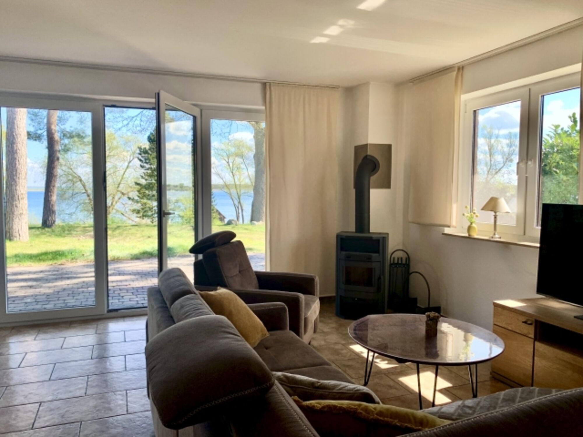 Ferienwohnung Müritzblick mit freiem Seeblick auf die Müritz mit Kamin