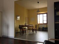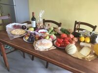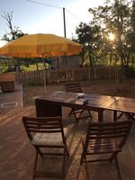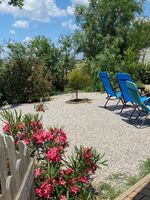 Gäste gelangen von hier auf die schöne Terrasse mit eingezäuntem Gartengrundstück, Genießen Sie hier einen wunderschönen Ausblick auf die benachbarten Hügel . Unser Garten und die Terrasse laden ein zum Sonnenbaden, Schmausen und Entspannen . Das Haus befindet sich am Ende eines ca. 150 m. langen, gut ausgebauten Feldweges und ist somit völlig autofrei. Am Ende des Grundstückes fährt ca. 4 mal am Tag eine alte Güterlokomotive vorbei, was aber nicht zu Lärmstörungen führt, für Kinder eher sehr interessant ist. Sie befinden sich im ländlichen Bereich von Piombino, hier können Sie nach turbulenten Tagen am Strand die Ruhe und den schönen Panoramablick auf die toskanischen Hügel genießen. Ein Auto ist erforderlich, da die Anbindung an das öffentliche Netz zwar vorhanden, aber sehr dürftig ausgebaut ist.