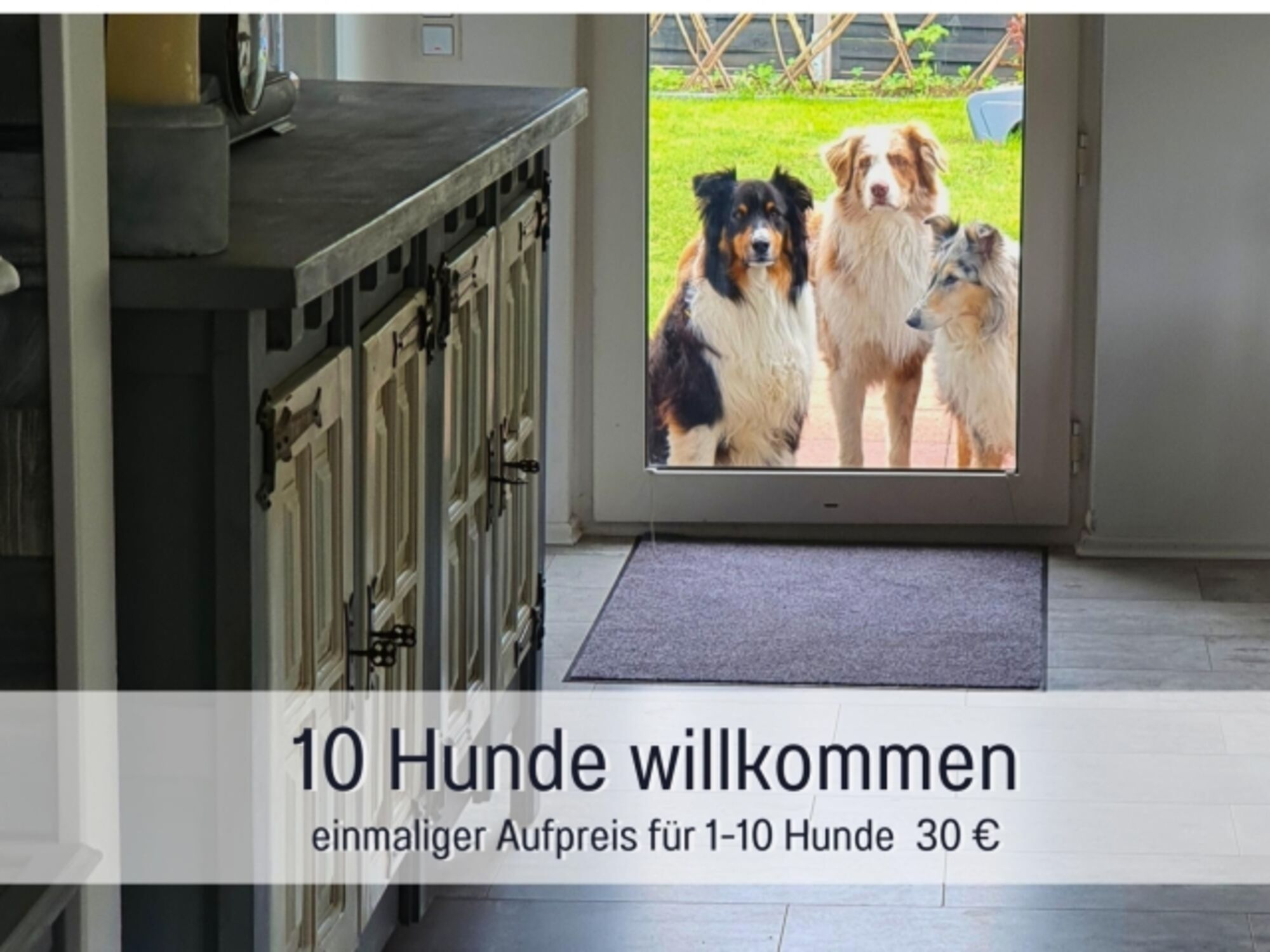 Im Preis inkludiert sind 4 Hunde, bei Aufenthalten unter 1 Woche fällt ein Zuschlag von 50 € an.