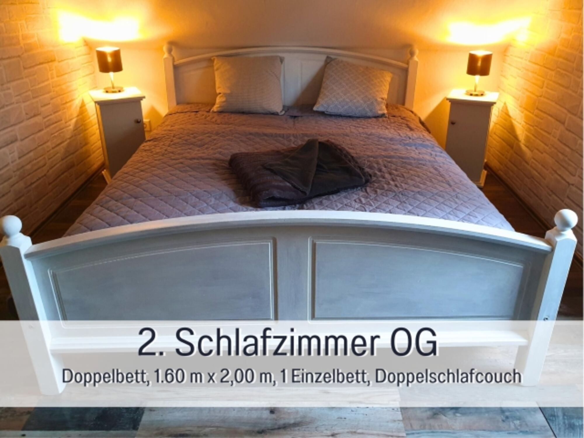 Doppelbett 1,60 x 2,00m, Einzelbett, Leselampe am Bett