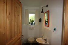 Es gibt eine separate Gästetoilette im Erdgeschoss. Waschbecken, Spiegel