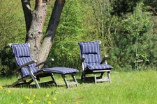 Das sehr ruhig gelegene, eingezäunte und von Bäumen umgebene Grundstück mit Saunahaus, Terrasse und Gartenmöbeln lädt zum Erholen, Grillen an schönen Sommerabenden und zum Spielen ein.