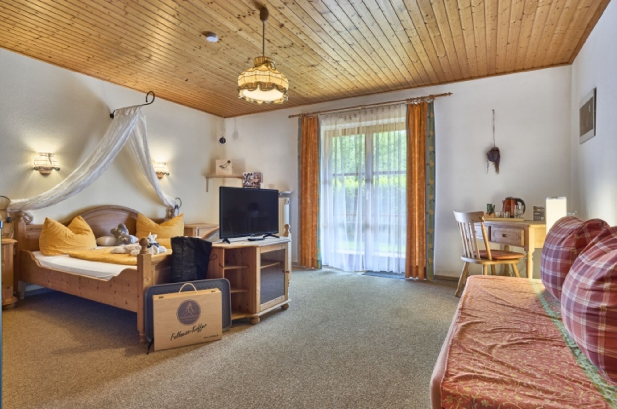 Unsere Pension verfügt , ein Familienzimmer mit 2 getrennten Schlafräumen und 8 großzügige Doppelzimmer (26qm), alle ausgestattet mit Doppelbett, Sofa/ Sitzgelegenheit, Schreibtisch, LCD Fernseher, Kühlschrank DU/WC und einer eingezäunten Terrasse oder einem Balkon.