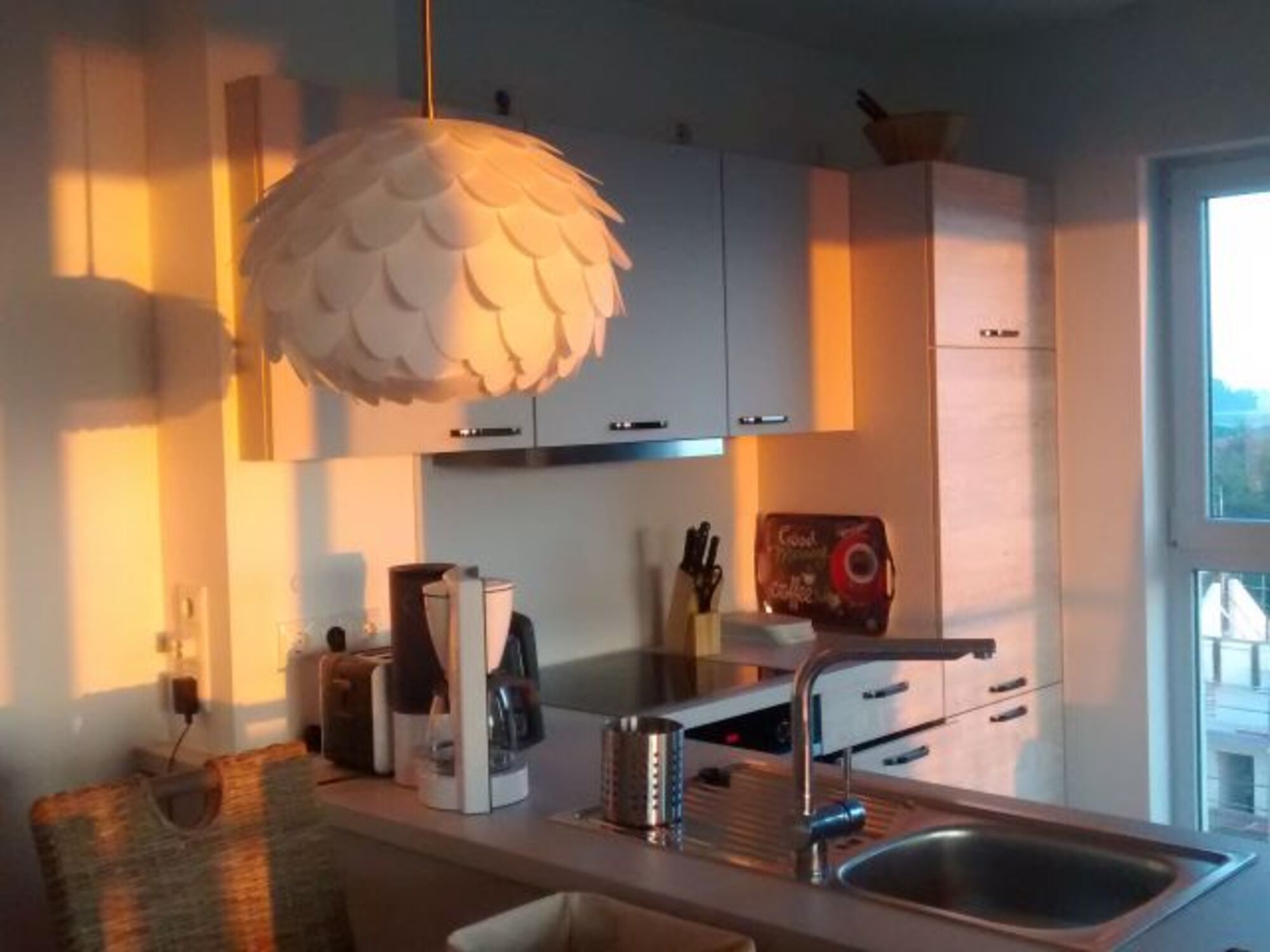 Die Einbauküche bietet Ihnen alles, was Sie benötigen und auch manche angenehme Kleinigkeiten (Milchschäumer, Pürierstab etc.) werden sie überraschen