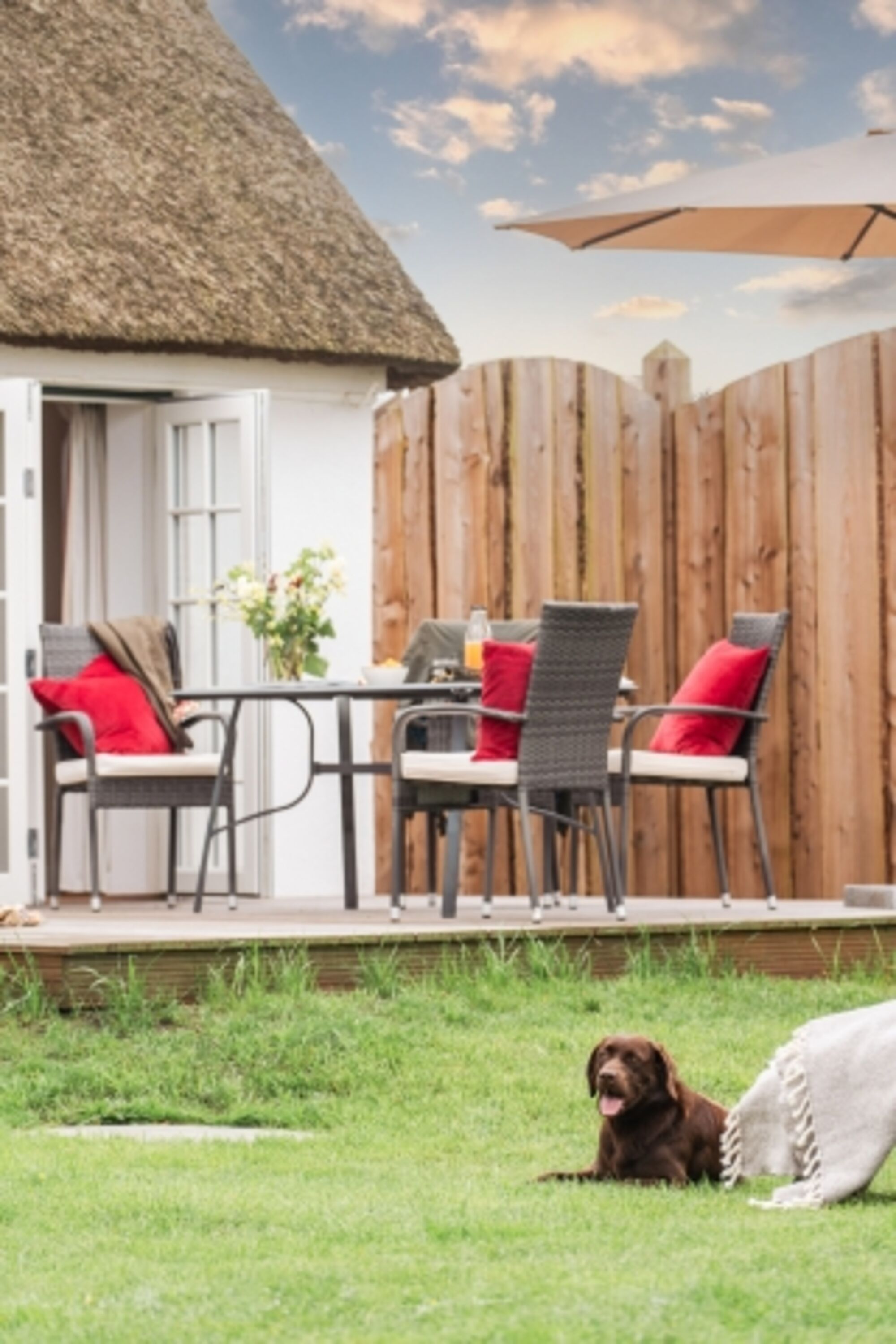 Romantisches Reetdachhaus, Kamin, eingezäuntem Garten, Gutshof-Sauna