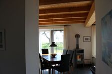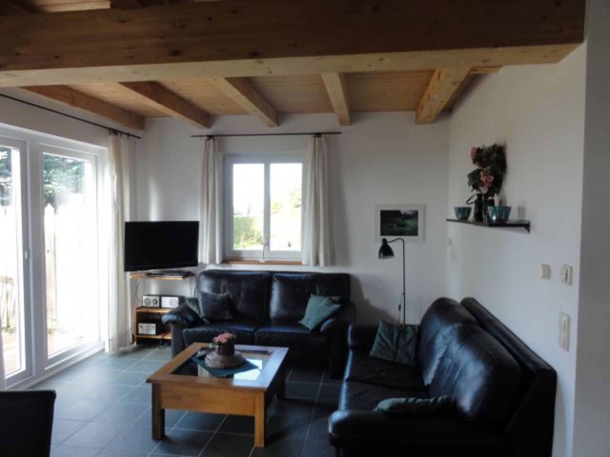 Es gibt 3 Schlafzimmer mit insgesamt sechs Betten, 2 Bäder, ein separates WC, Wohnbereiche in Erd- und Obergeschoss, einen Kaminofen, eine Sauna sowie einen Nebenraum mit Waschmaschine und Unterstellstellmöglichkeit für Ihre mitgebrachten Fahrräder.