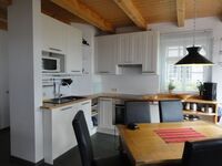 Cerankochfeld, Dunstabzugshaube, Kühlschrank mit Gefrierfach, Eierkocher, Korkenzieher / Flaschenöffner, Essplatz in der Küche