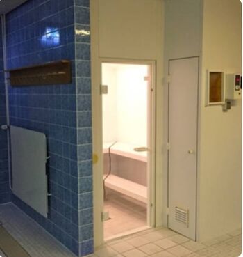 Sauna, Dampfbad (mit Münzbetrieb), Ruheraum, Außenhof. Kostenfreie Parkplätze am Haus. Große Dachterrasse auf dem Haus. Waschmaschine, Trockner mit Münzbetrieb, Fahrradabstellplätze.