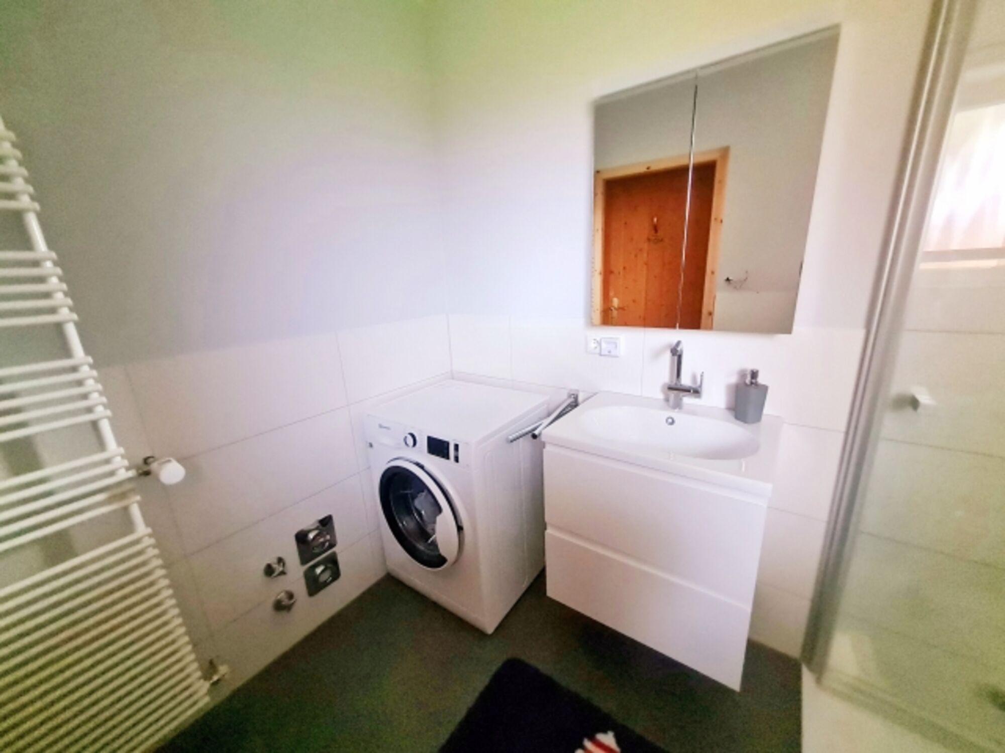 Das Duschbad mit Tageslicht und Waschmaschine ist ebenfalls großzügig ausgelegt und verfügt über genügend Stauraum.