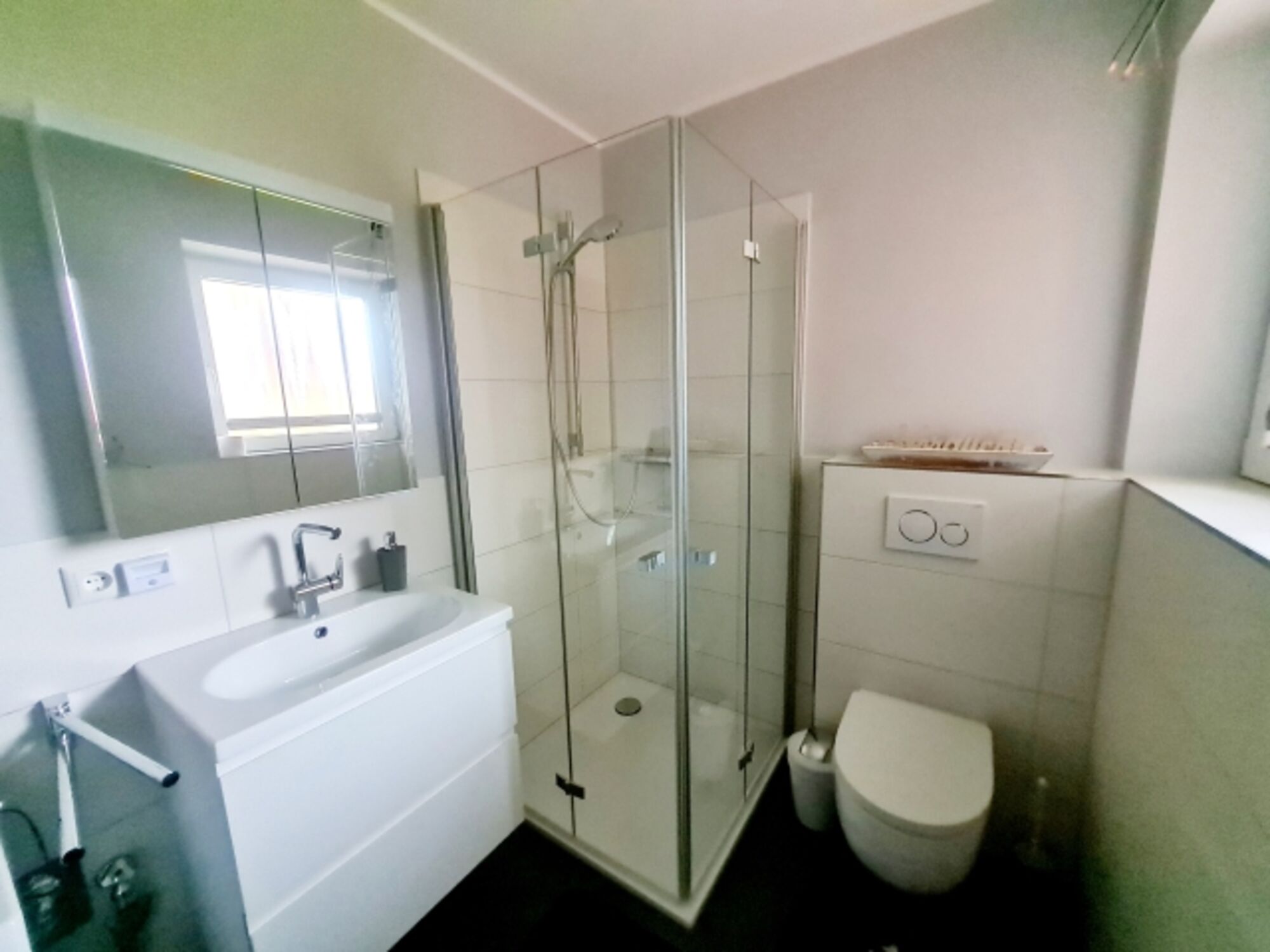 Anfang 2025 wurde das Bad kernsaniert und präsentiert sich völlig neu. Zusätzlich zum Handtuchheizkörper gibt es nun auch eine Fußbodenheizung.