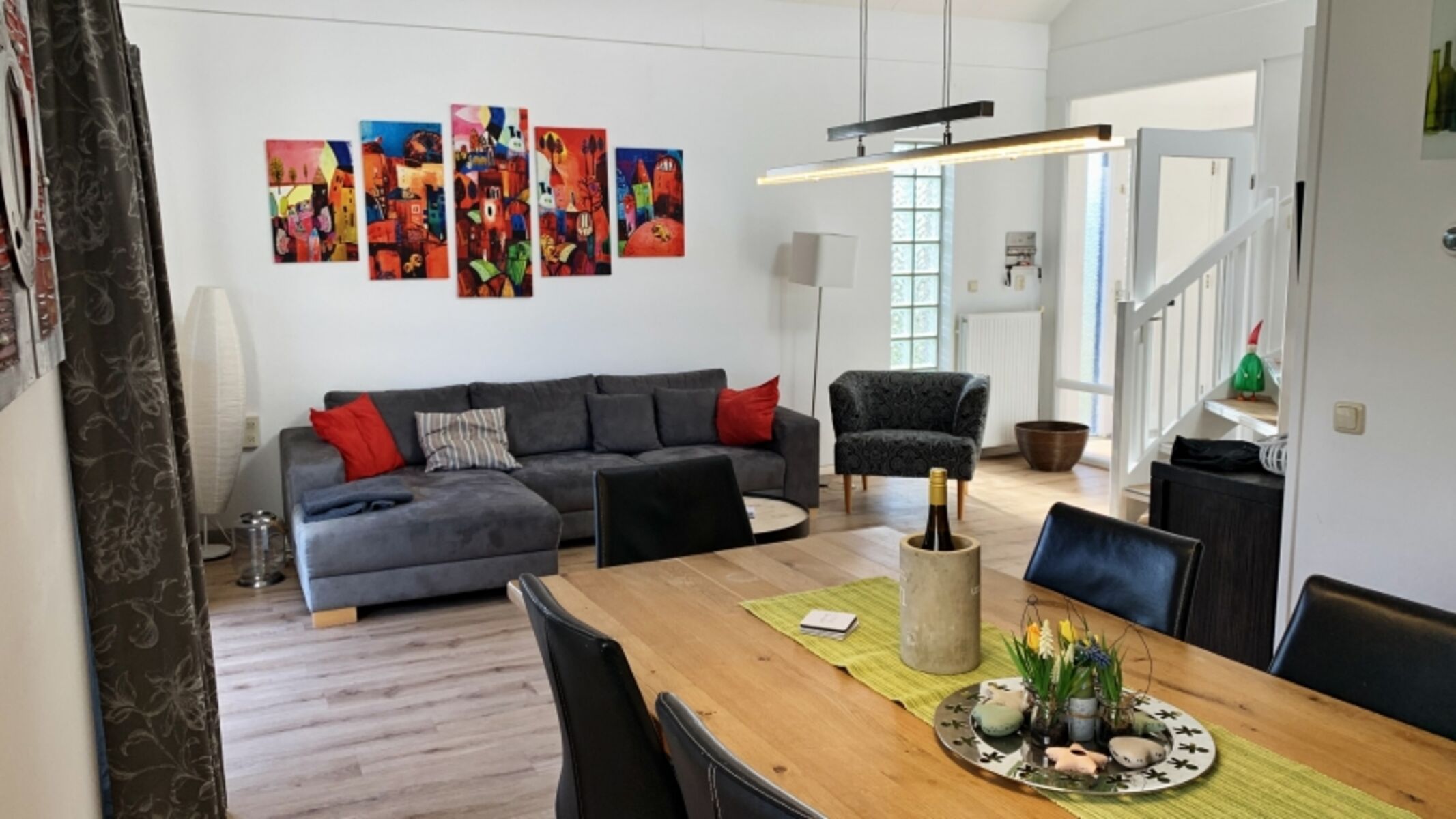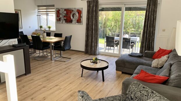 Ein schöner Holztisch mit 6 hochwertigen Lederstühlen (ein Tripp-Trapp von Stokke für Kinder steht zusätzlich zur Verfügung) und das gemütliche Wohnzimmer laden auch zum Verweilen im Haus ein. Auf der Terrasse steht ein schöner Gartentisch mit 6 Stühlen. Von dort aus genießen Sie den schönen Blick auf die Dünen bzw. auf die Tulpenfelder . Falls die Sonne zu stark ist können Sie sich mit der Markise entsprechend schützen. Ein Gartengrill steht auch zur Verfügung. Im März 2021 wurde noch eine Sauna eingebaut und ein Strandkorb in den Garten gestellt.