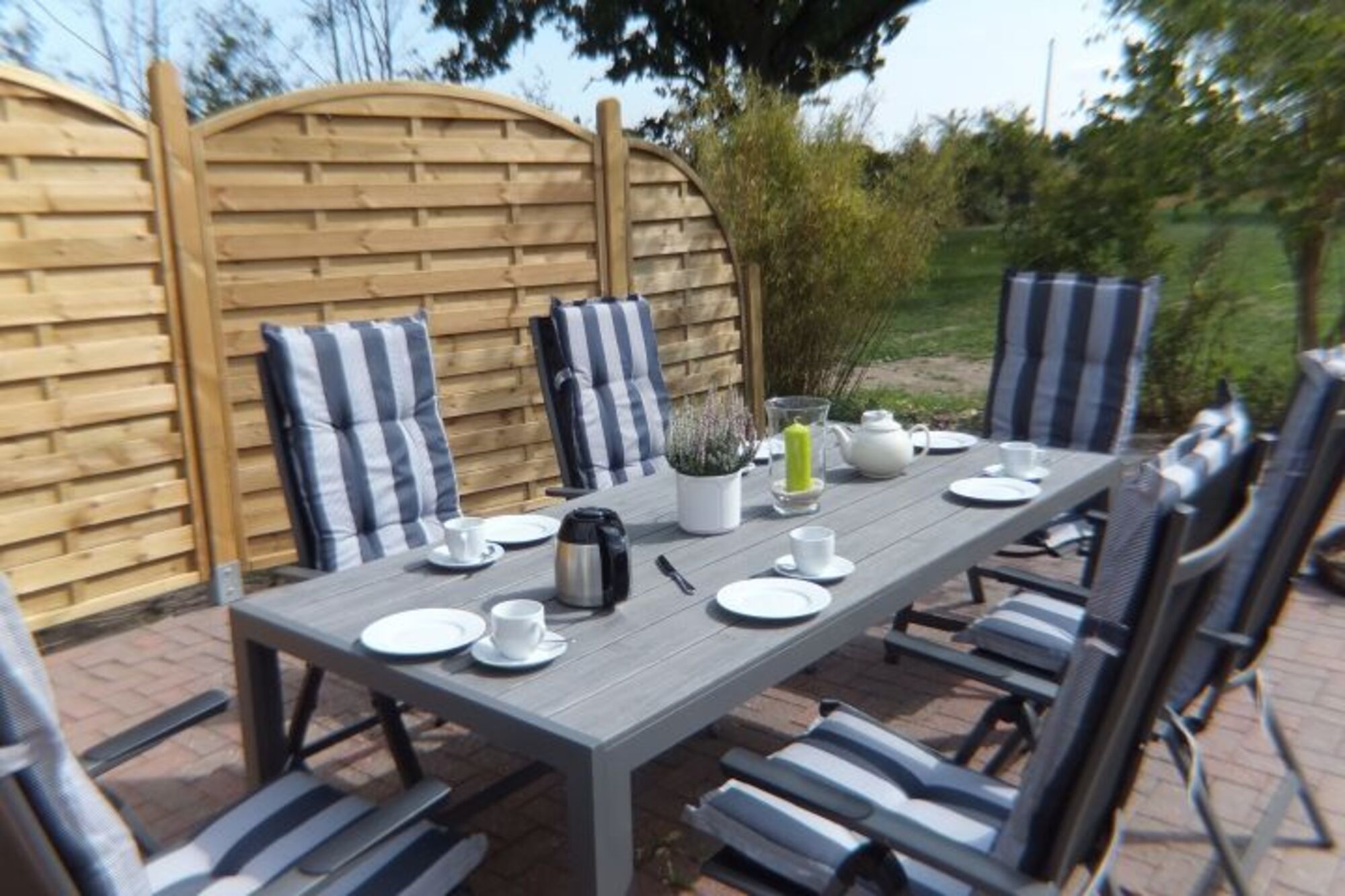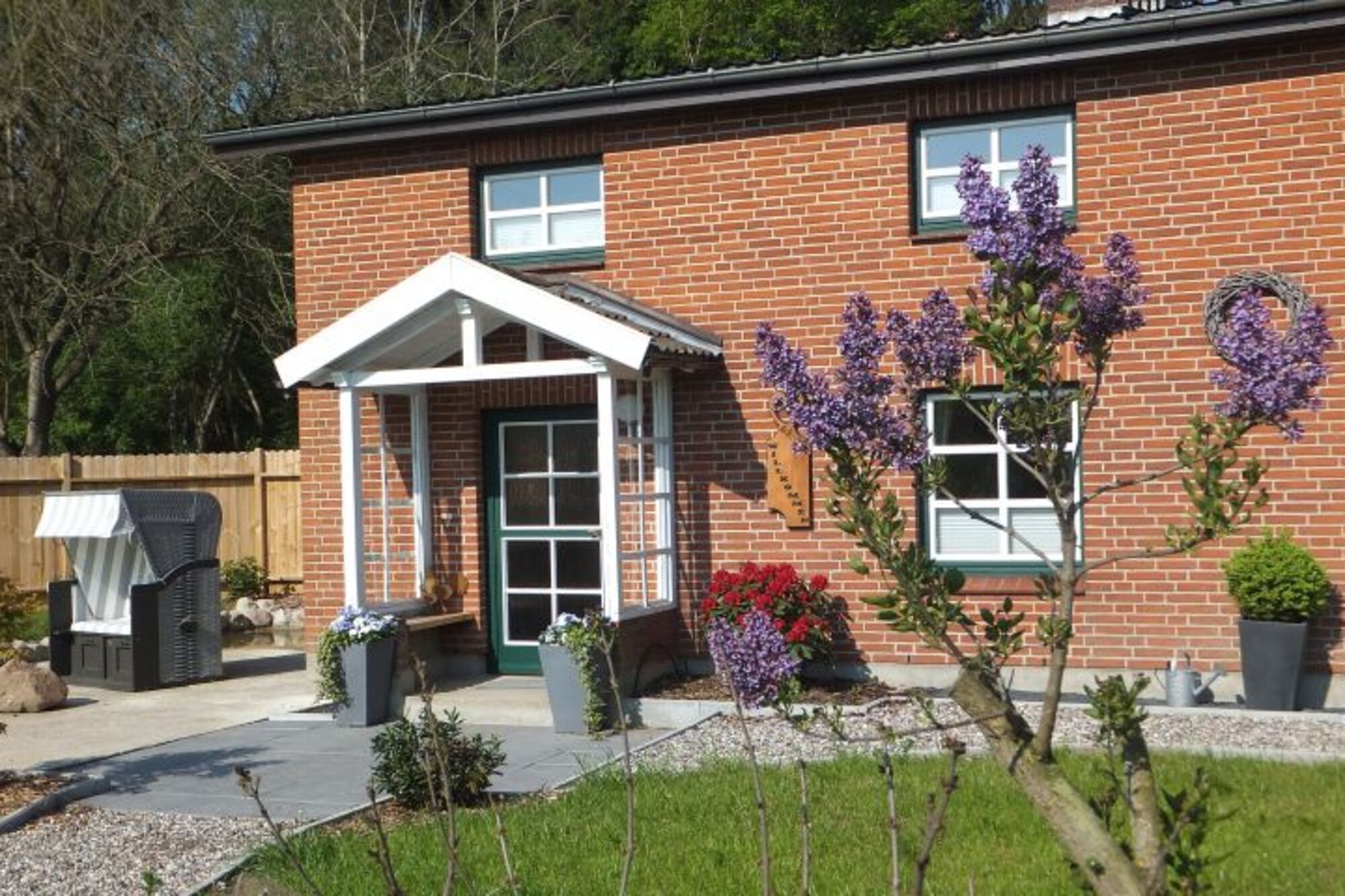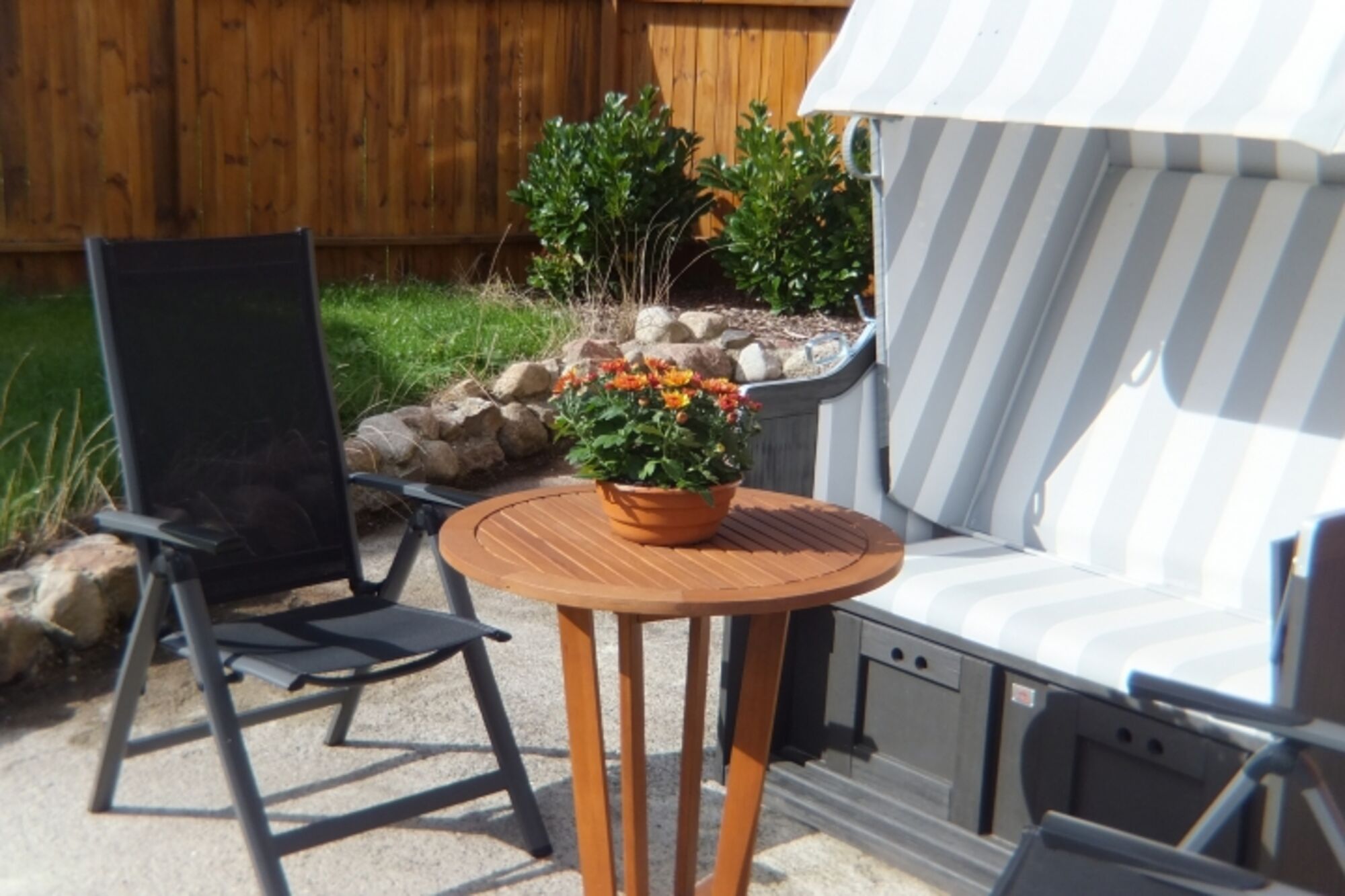 Liegewiese, Strandkorb, Gartenmöbel, Kohlegrill, Bänke, Windschutz