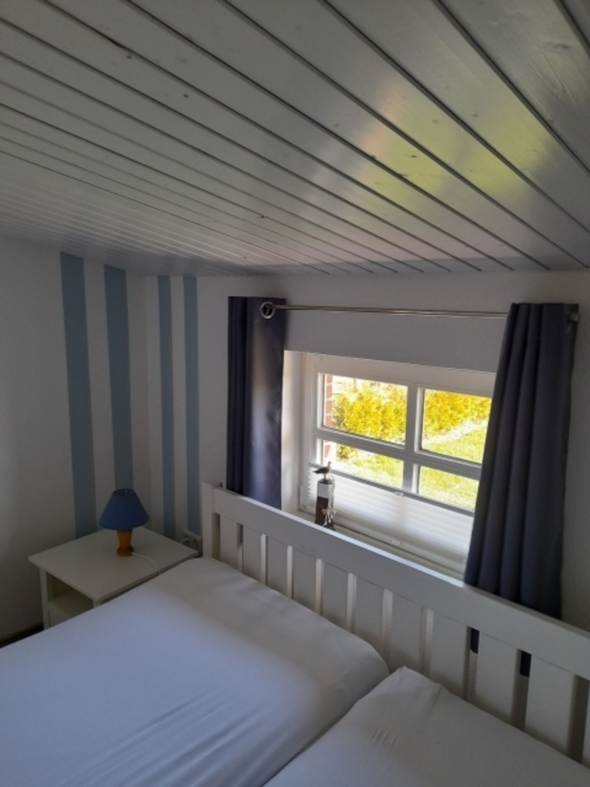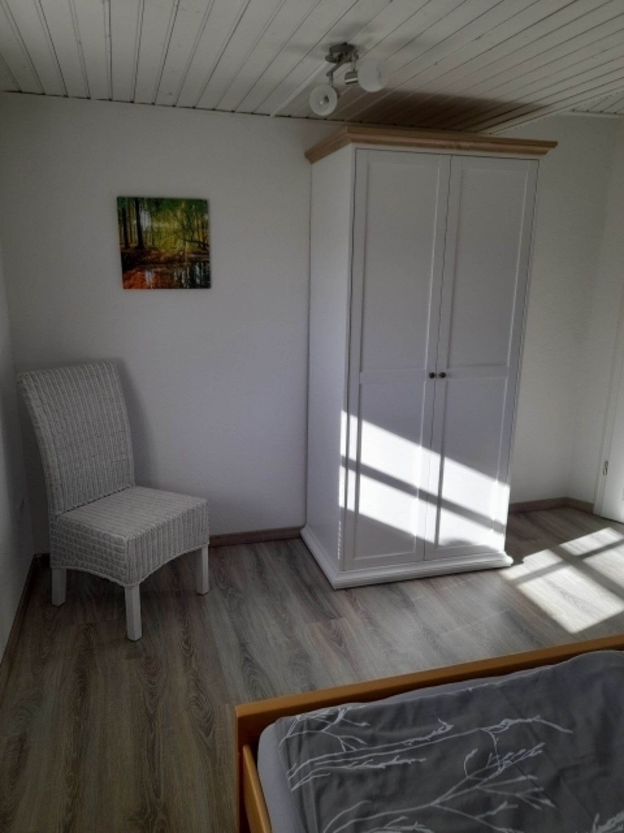 Ein großer Spiegel befindet sich im Flur vor den Schlafzimmern. Doppelbett 1,80 x 2,00m, Leselampe am Bett