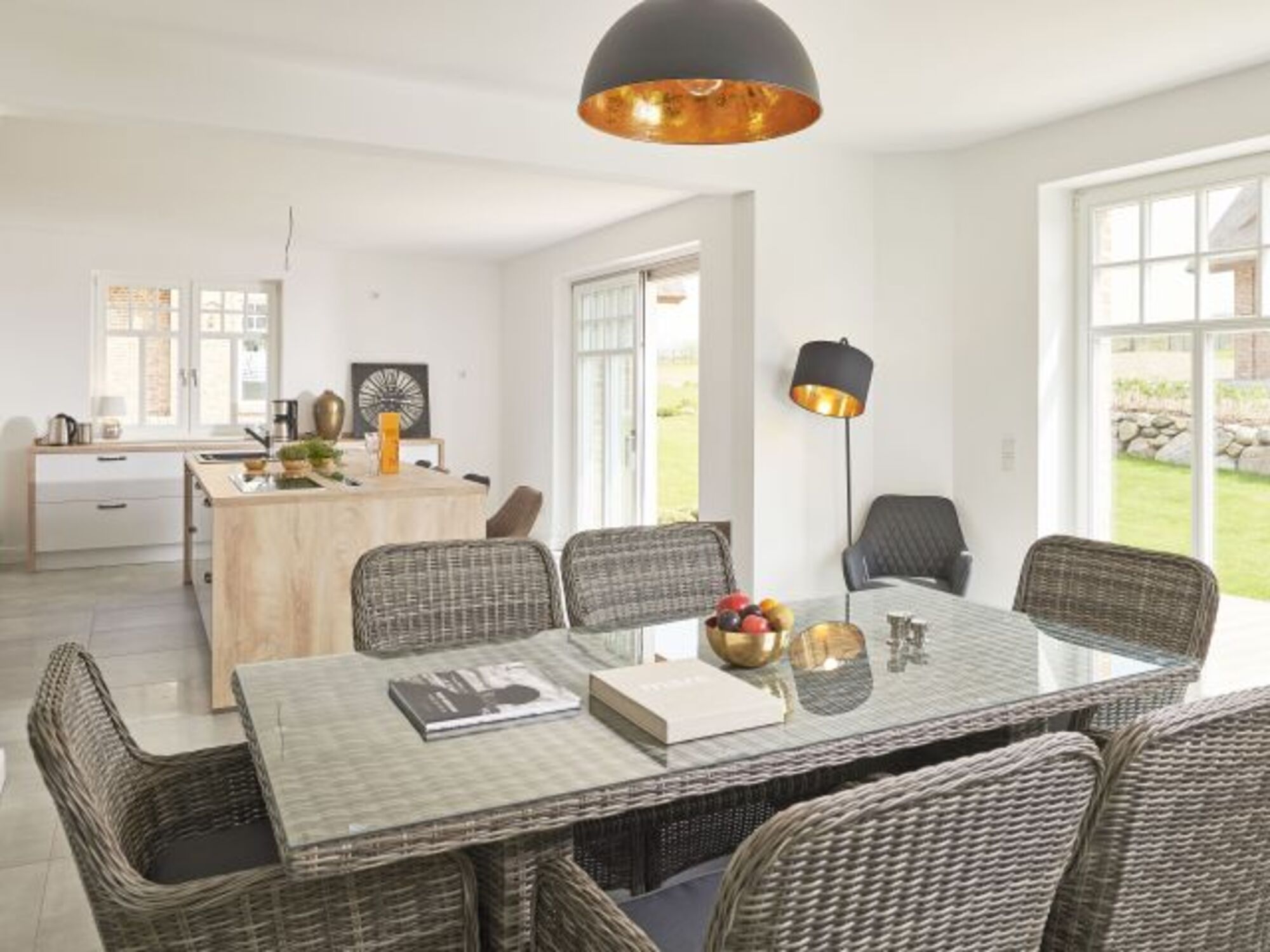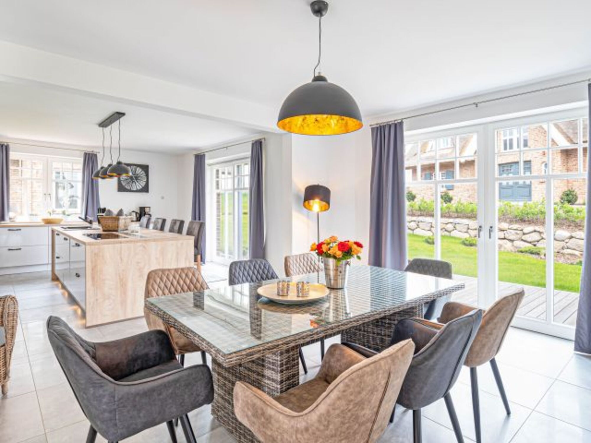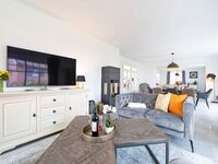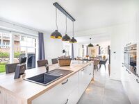 Das Strandhaus "Oie" bietet auf 220 m² Wohnfläche 3 luxuriöse Schlafzimmer, 3 Bäder, eine Sauna, eine voll ausgestattete Küche und einen großzügigen Wohnbereich mit Kamin. Eine Sonnenterrasse mit Strandkorb und Sitzgruppe auf einem rundum eingezäunten Grundstück lädt zum Entspannen ein. Das Erdgeschoss verfügt über einen Wohn- und Essbereich mit eleganten Möbeln, einem UHD-Smart-TV und einer integrierten Küchenzeile mit Hochglanzflächen. Im Saunabereich mit Dusche und WC kann man ebenfalls entspannen. Die Schlafzimmer im oberen Stockwerk bieten genügend Stauraum und TV-Geräte. Zwei Schlafzimmer haben en-suite Bäder mit Meerblick. Es gibt kostenfreies WLAN, 2 PKW-Stellplätze, eine Waschmaschine/Trockner und Bügelutensilien. Das Strandhaus ist für 6 Personen und 1 Hund buchbar.