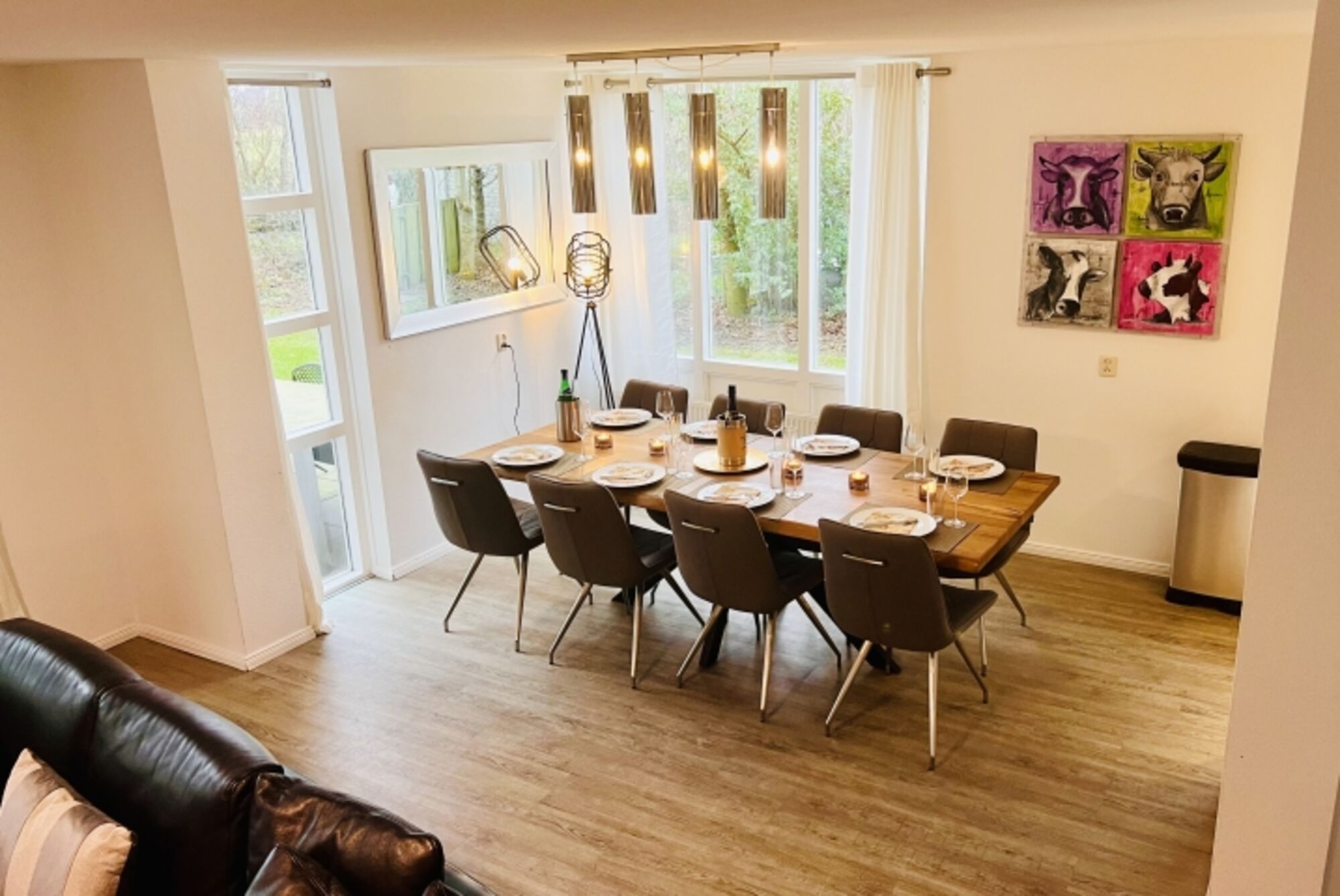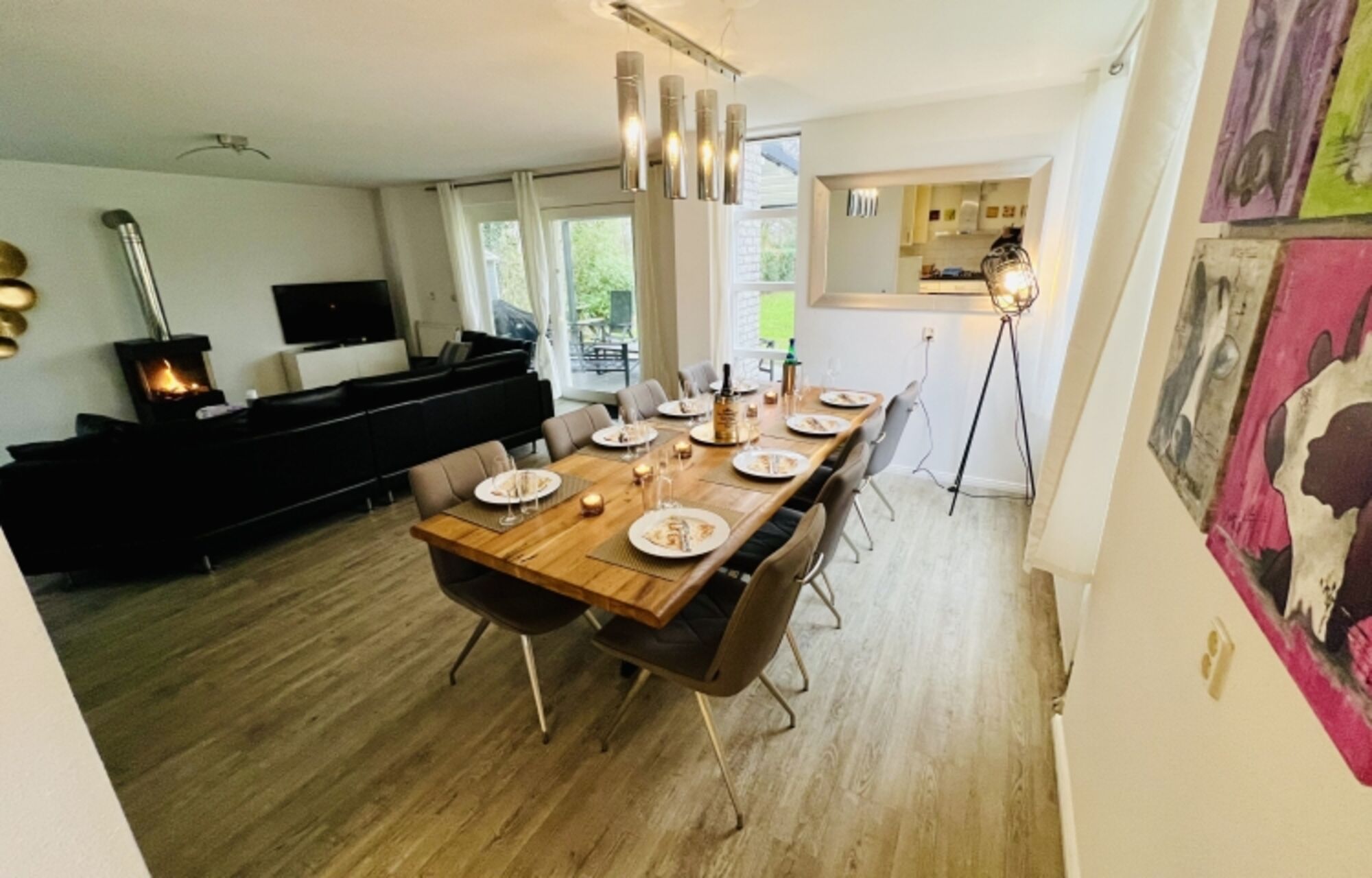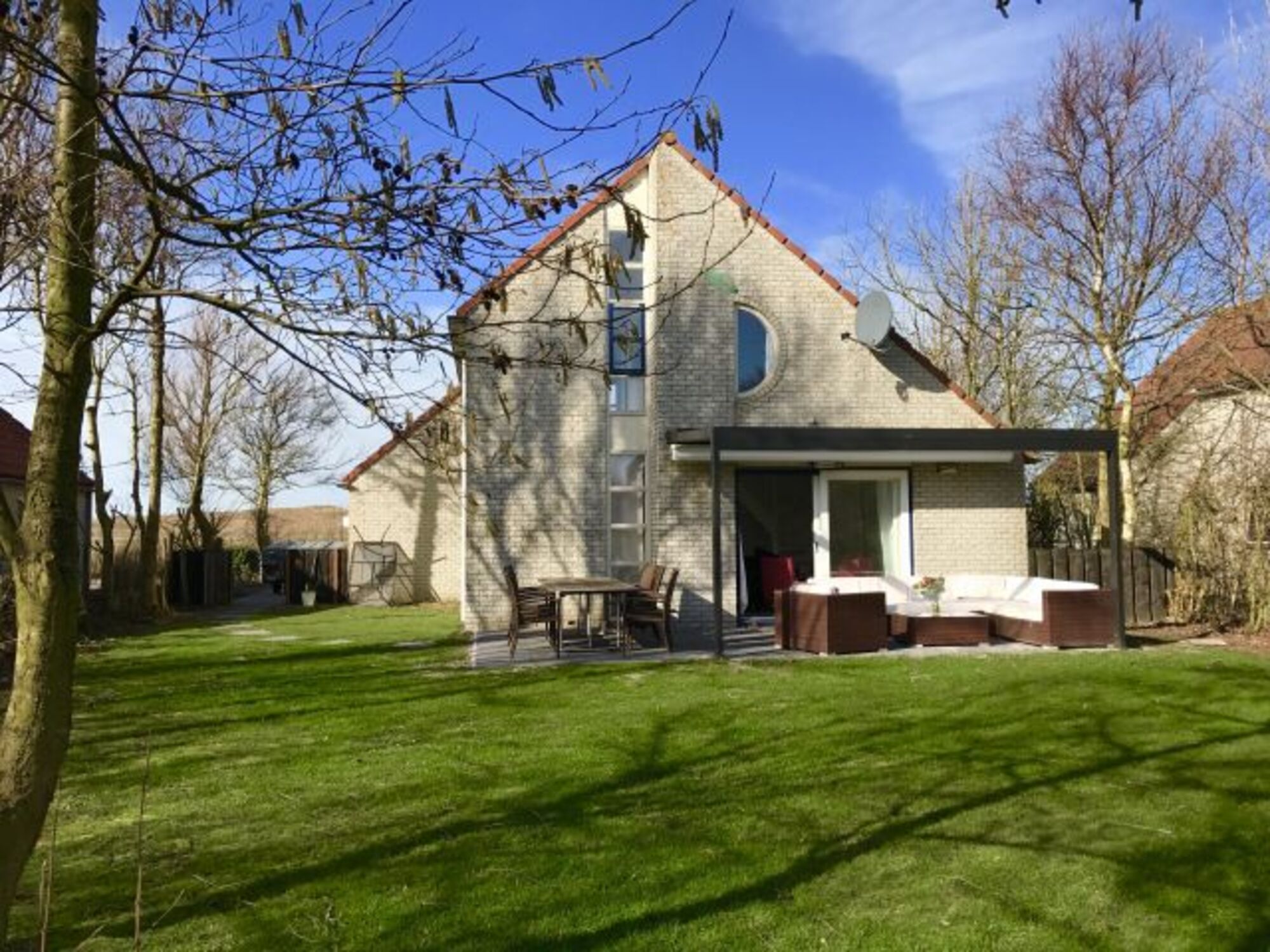 Die renovierte Villa Dünenblick XXL grenzt mit dem großen nach hinten liegenden Garten direkt an den schönen Golfplatz. Von der Vorderseite der Villa genießt man den freien Blick auf die Dünen und Tulpenfelder. Das Haus wurde von uns in renoviert und umgestaltet. Es gibt 4 getrennte Schlafzimmer mit insgesamt 9 Betten. Jedes Schlafzimmer verfügt über einen Fernseher, drei davon mit DVD-Player. Alle Schlafzimmer haben einen Kleiderschrank und bieten so genügend Stauraum für die gesamte Urlaubswäsche. Das Haus verfügt über eine schöne Sauna und einen kuscheligen Gas-Kamin. Es gibt 2 Badezimmer (einmal mit Dusche und einmal mit Dusche und Whirlwanne) und ein getrenntes 1 Gäste-WC. Der große Garten ist komplett eingezäunt, bietet mehrere Essplätze und genügend Platz zum Spielen und Relaxen. Die neu gepflasterte Terrasse verfügt über eine elektrische Überdachung, und eine große gemütliche Lounge sowie einen Esstisch für 10 Personen. Der große lichtdurchflutete Wohn-Essbereich verfügt über einen 55 Zoll Fernseher, ein schöner Esstisch mit 8Stühlen und ein solides Ledersofa mit viel Platz. Eine sehr gut ausgestattete Küche runden das Bild ab.