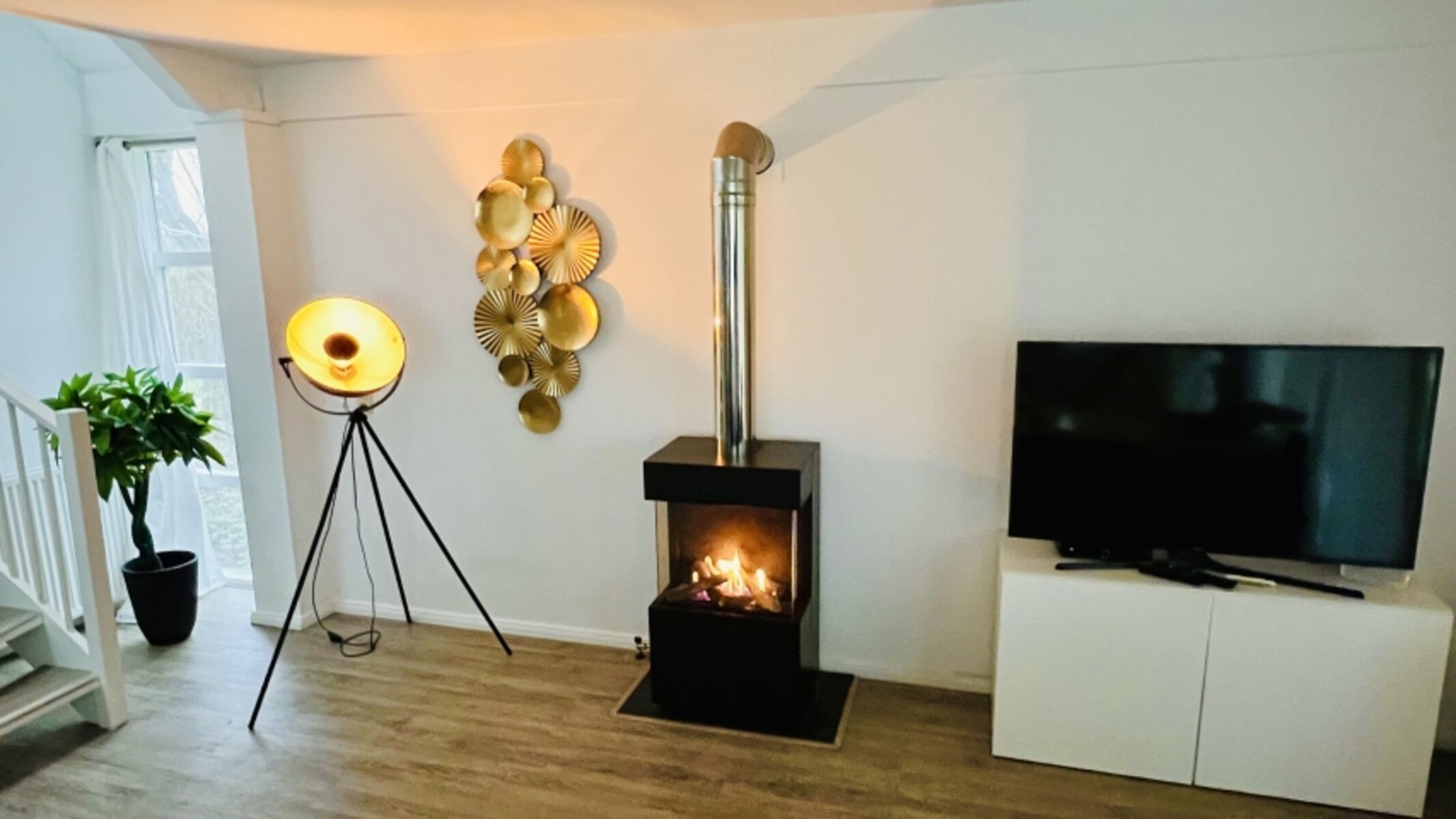 TV-Sat, Bücher, Kaminofen, Eckcouch, 3er-Sofa, Sessel