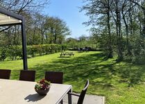 Liegewiese, Gartenmöbel, Gasgrill, Bänke, Überdachte Terrasse (mobil)