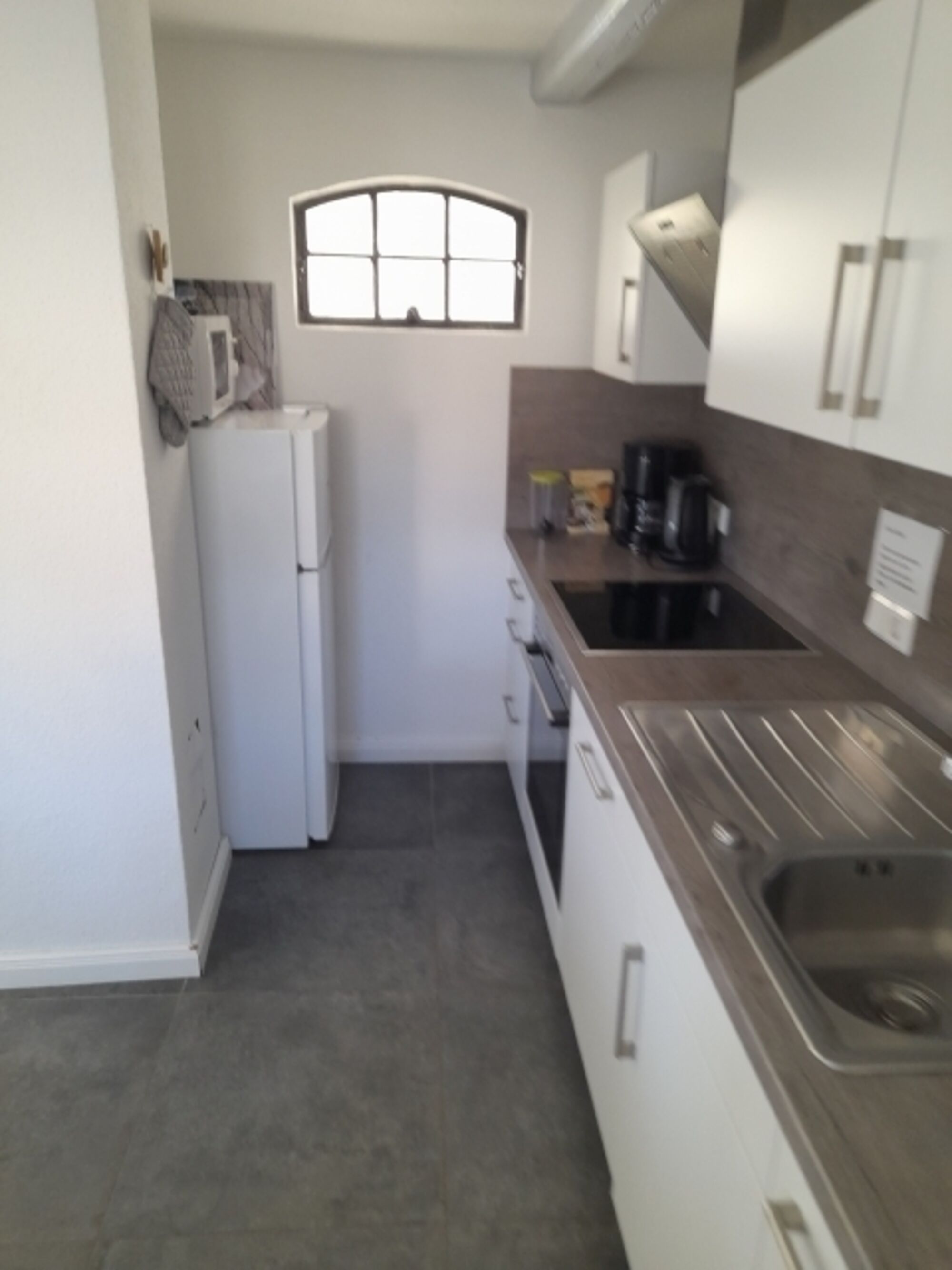 Cerankochfeld, Dunstabzugshaube, Kühlschrank mit Gefrierfach, Mixer, Korkenzieher / Flaschenöffner, Geschirrhandtücher, Mülltüten, Essplatz in der Küche