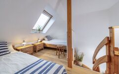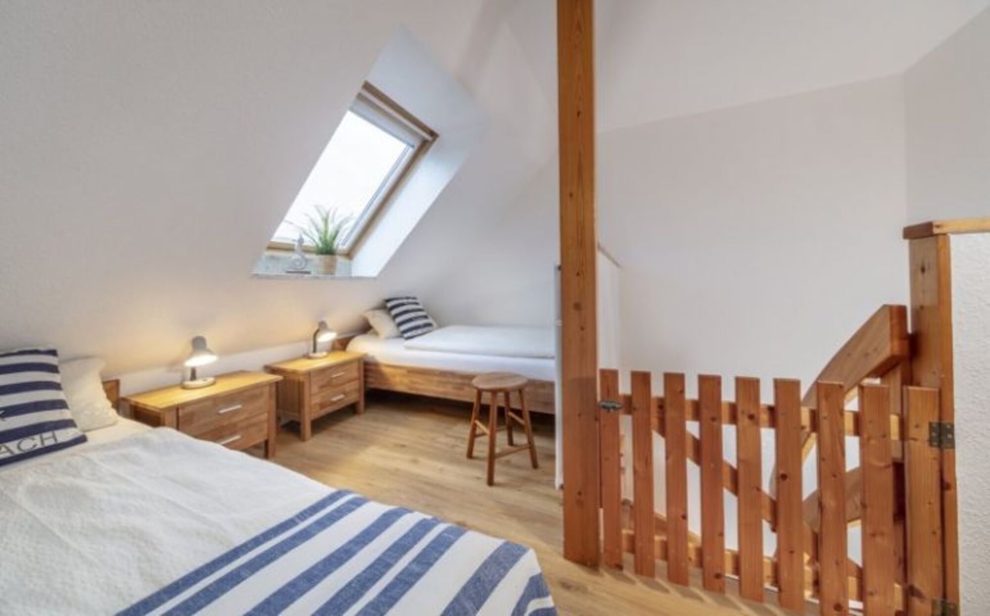 Neben dem Schlafzimmer aus massiver Eiche befindet sich ein weiteres Schlafzimmer mit 2 Betten, das zum Träumen einlädt oder als Ausweichmöglichkeit für einen Schnarcher dienen kann. Das erhält die gute Urlaubsstimmung.
