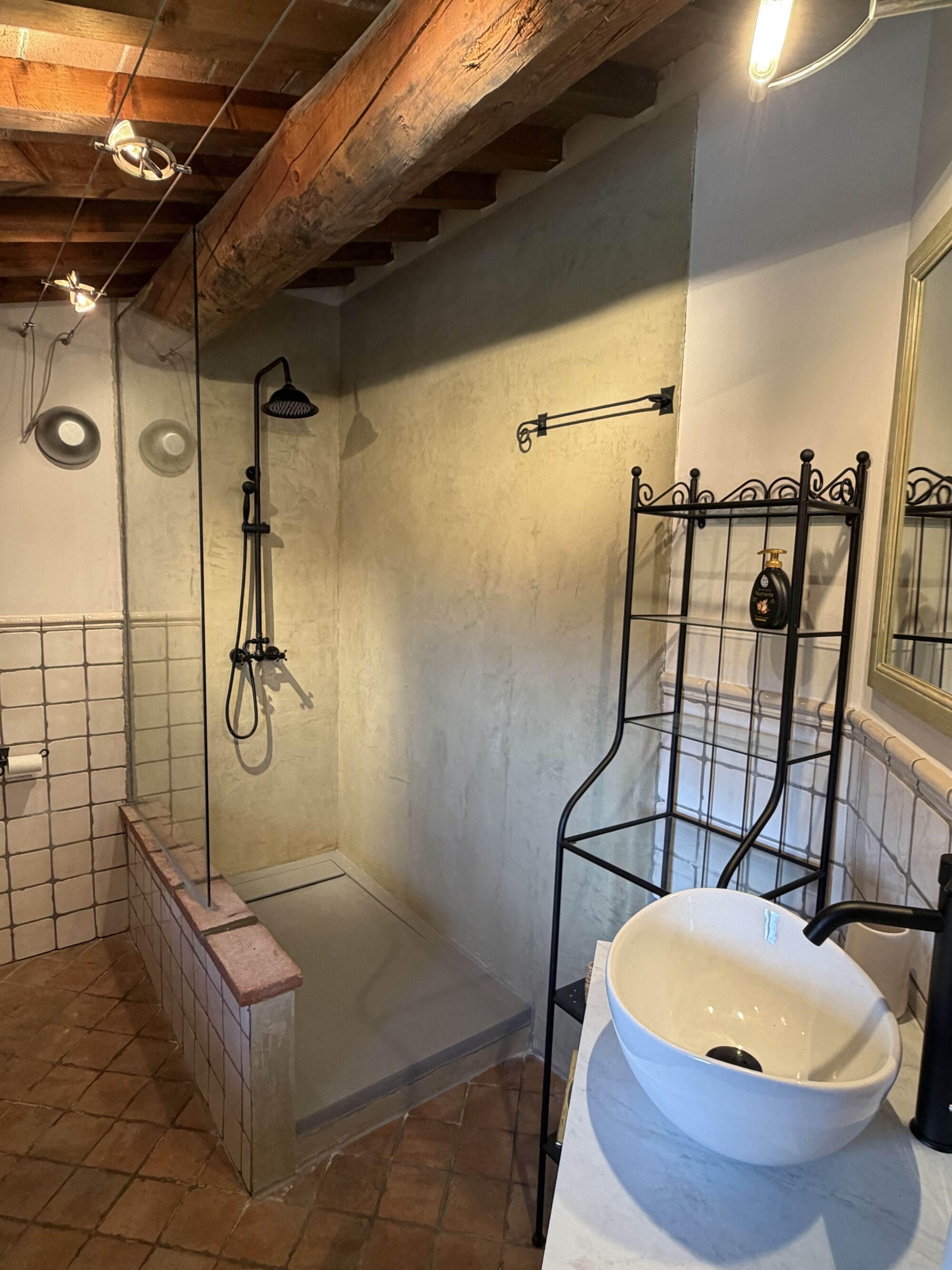 Im Nebengebäude befindet sich das dritte Schlafzimmer mit eigenem Bad. Bei Buchungdes Nebengebäudes, berechnen wir eine einmalige Endreinigung in Höhe von 50€