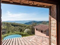 Das Ferienhaus liegt in Alleinlage auf 600 Meter Höhe zwischen Castellina Marittima und Chianni. Es bietet einen traumhaften Panoramablick über den See von St. Luce bis zum Meer, umgeben von grünen Oliventerrassen und den üppigen Wäldern des Monte Vaso.