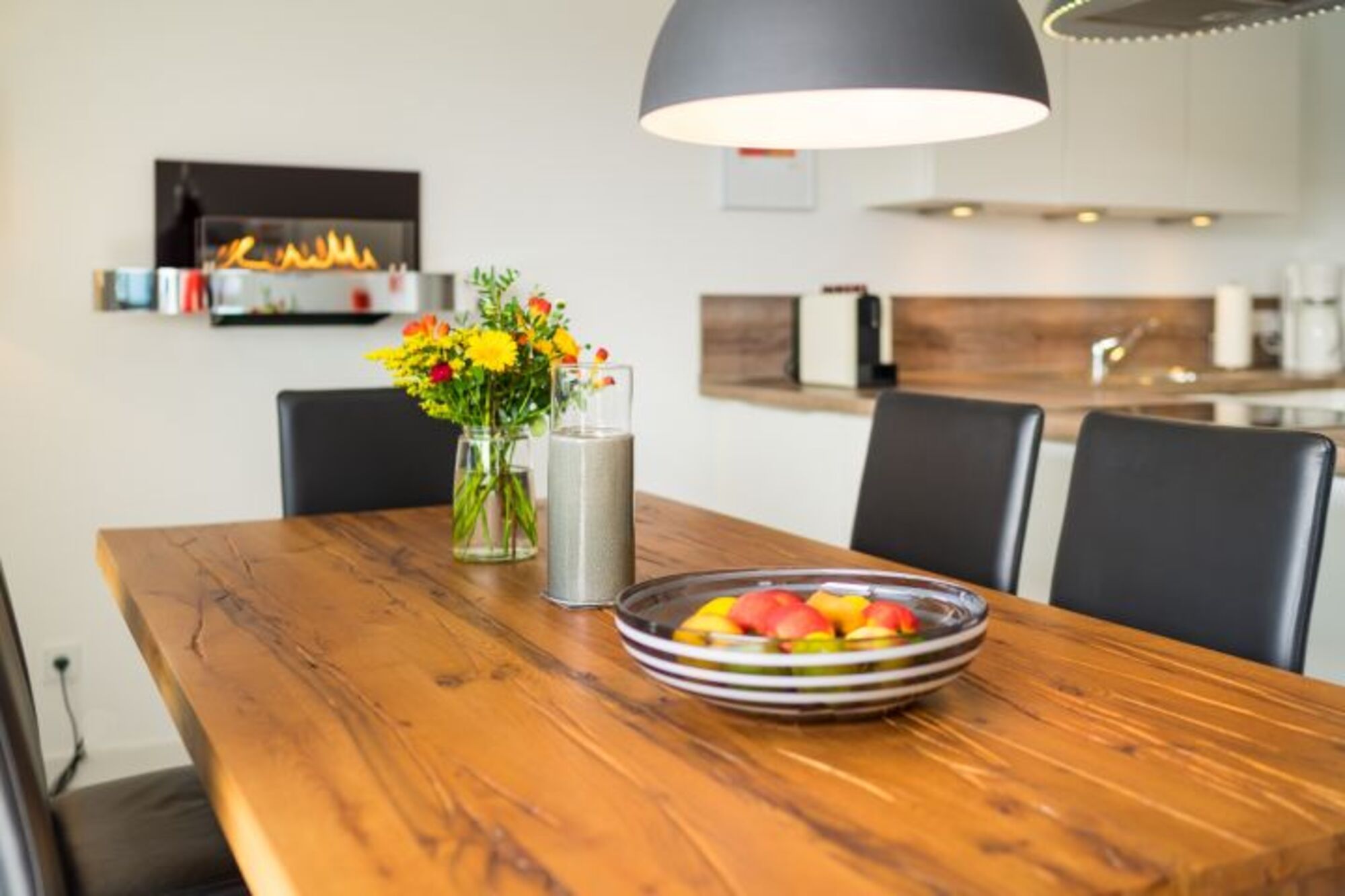 Cerankochfeld, Dunstabzugshaube, Kühlschrank mit Gefrierfach, Nespresso-Automat, Mixer, Korkenzieher / Flaschenöffner, Gewürze (Salz, Pfeffer, Zucker), Öl / Essig, Geschirrhandtücher, Mülltüten, Essplatz in der Küche, TV in der Küche