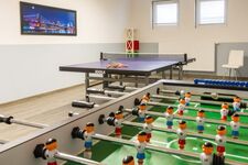 Im Souterrain des Hauses befindet sich auf 365 m² ein großer Freizeit-, Fitness- und Wellnessbereich (Biosauna, Finnische Sauna, Infrarotkabine, Fitnessraum, Massageraum, Ruheraum, Aufenthaltsraum, Spielzimmer für Kleinkinder, Billard, Tischtennis, Kicker), der Ihnen kostenlos zur Verfügung steht und die Interessen jeden Alters berücksichtigt.