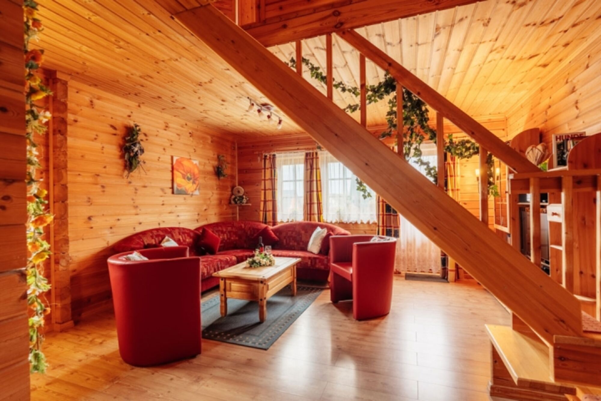 Unser Blockhaus ist auf den Besuch von max 6 Personen ausgerichtet. Sie finden alles was Sie für einen erholsamen Aufenthalt mit oder ohne Vierbeiner brauchen - heimelig eingerichtete Räumlichkeiten, zwei kleine Balkone, eine kleine Terrasse und einen kleinen eingezäunten Garten.