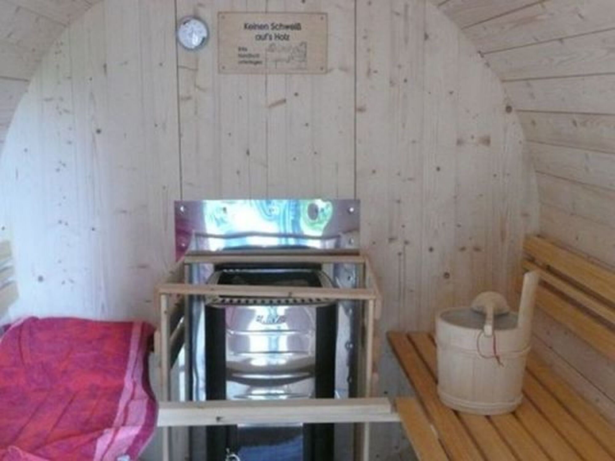 Die wunderschöne Sauna wird mit Holz beheizt und bietet ein tolles Saunaerlebnis.