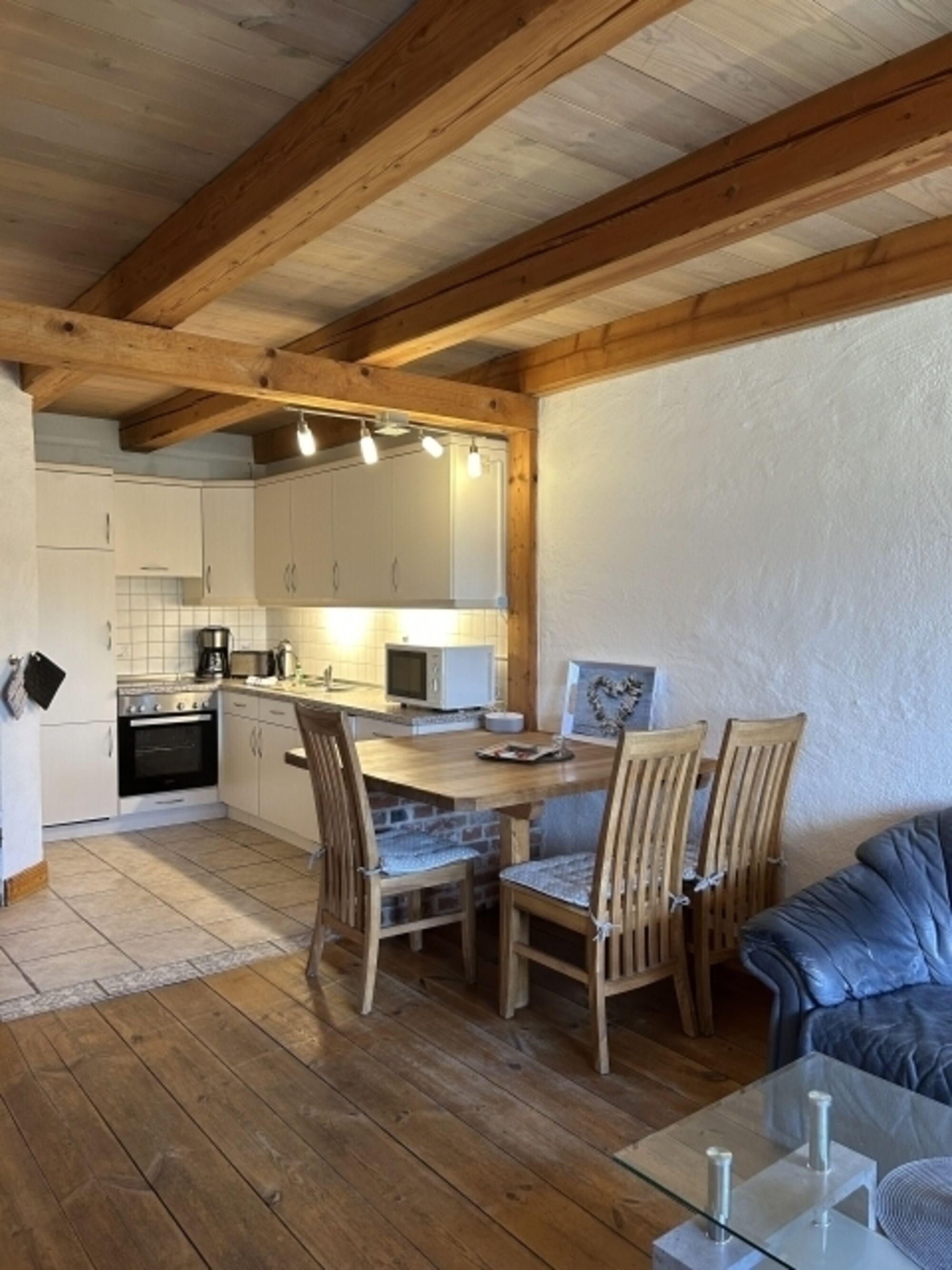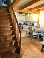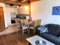Die Ferienwohnung Seemöwe ist unsere größte Ferienwohnung. Der großzügige Wohnbereich mit offener Küche bietet viel Platz für einen entspannten Urlaub. Das Bad haben wir in 2024 für euch ganz neu gestaltet. Über eine Holztreppe gelangt man in das geräumige Schlafzimmer mit Doppelbett. Die Kinder schlafen getrennt von den Eltern in einem nachgebauten historischen Alkoven.