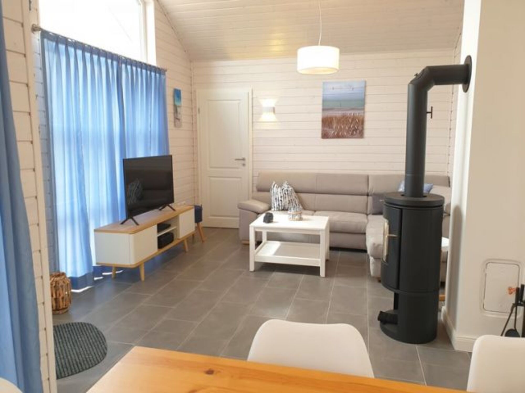 Zusatzaustattung: Waschmaschine, WLAN, Kaminofen, SAT-TV, 2 Flachbildschirm-Fernseher, Blu-Ray-Player, mobile Bluetooth-Lautsprecher (Dockin D Fine), Sauna, Bücher, Spiele, Hochstuhl, Kinderreisebett mit separater Matratze, Fußbodenheizung