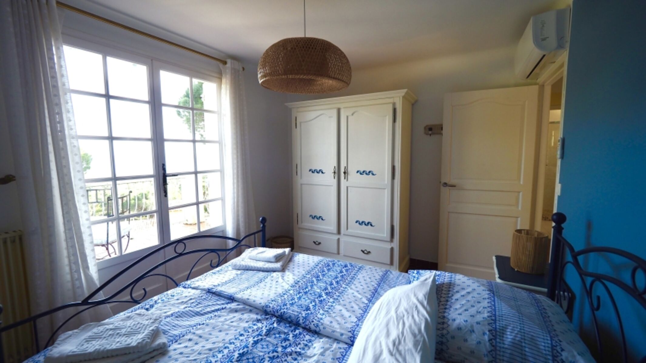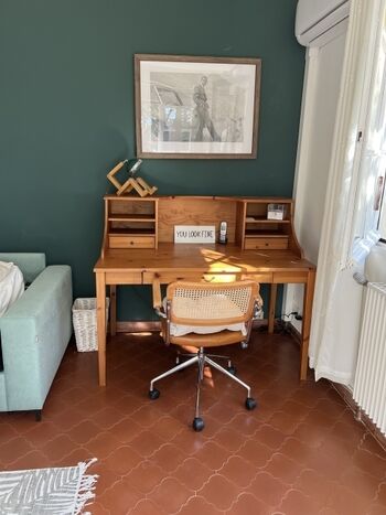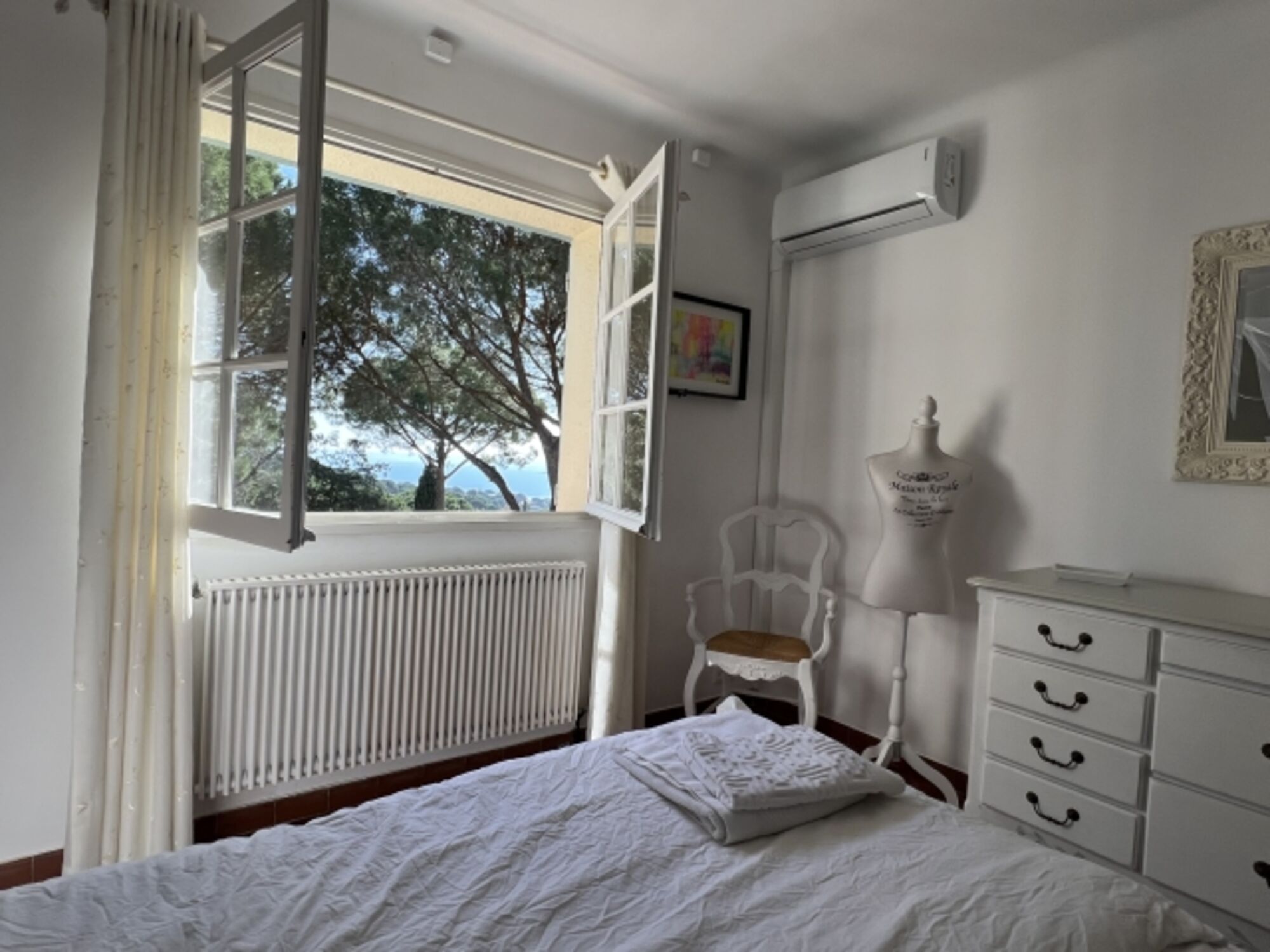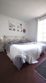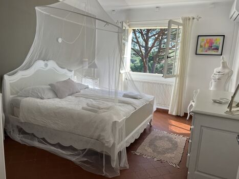 Im Obergeschoß befinden sich zwei Schlafzimmer mit je einem 1,80m breiten Bett sowie ein Bad mit Dusche und ein separates WC. Die oberen Schlafzimmer sind klimatisiert. In den Schlafzimmern finden Sie nun nach Renovierung 2023 USB Steckdosen an den Betten.