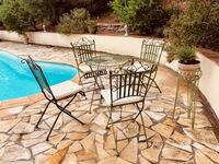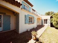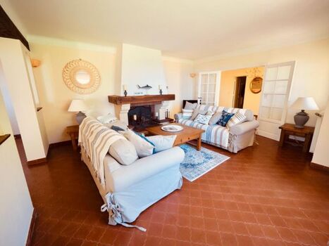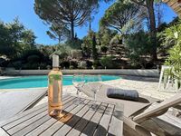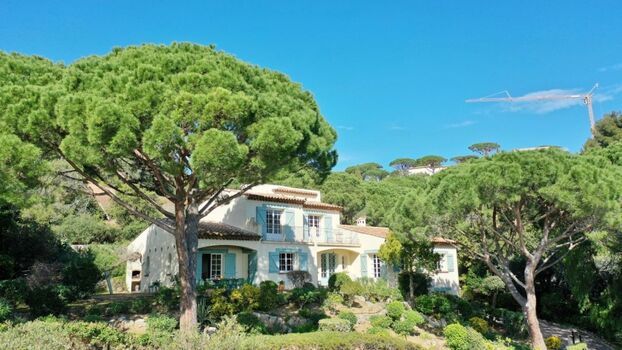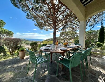 Diese komfortable Meerblick Villa für 10 Personen mit Swimmingpool in Sainte-Maxime steht in einem ruhigen Villenviertel direkt am feinen Sandstrand von la Nartelle.