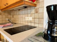 2-Platten Herd, Cerankochfeld, Kühlschrank mit Gefrierfach, Korkenzieher / Flaschenöffner, Gewürze (Salz, Pfeffer, Zucker), Geschirrhandtücher, Mülltüten, Essplatz in der Küche