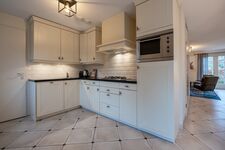 Die Wohnung verfügt über eine, über Eck angeordnete, offene Küche mit CombiOfen, Gasherd, Geschirrspülmaschine, Kühlschrank und einer Abzugshaube aus rostfreiem Stahl. In der Waschküche befinden sich Waschmaschine.