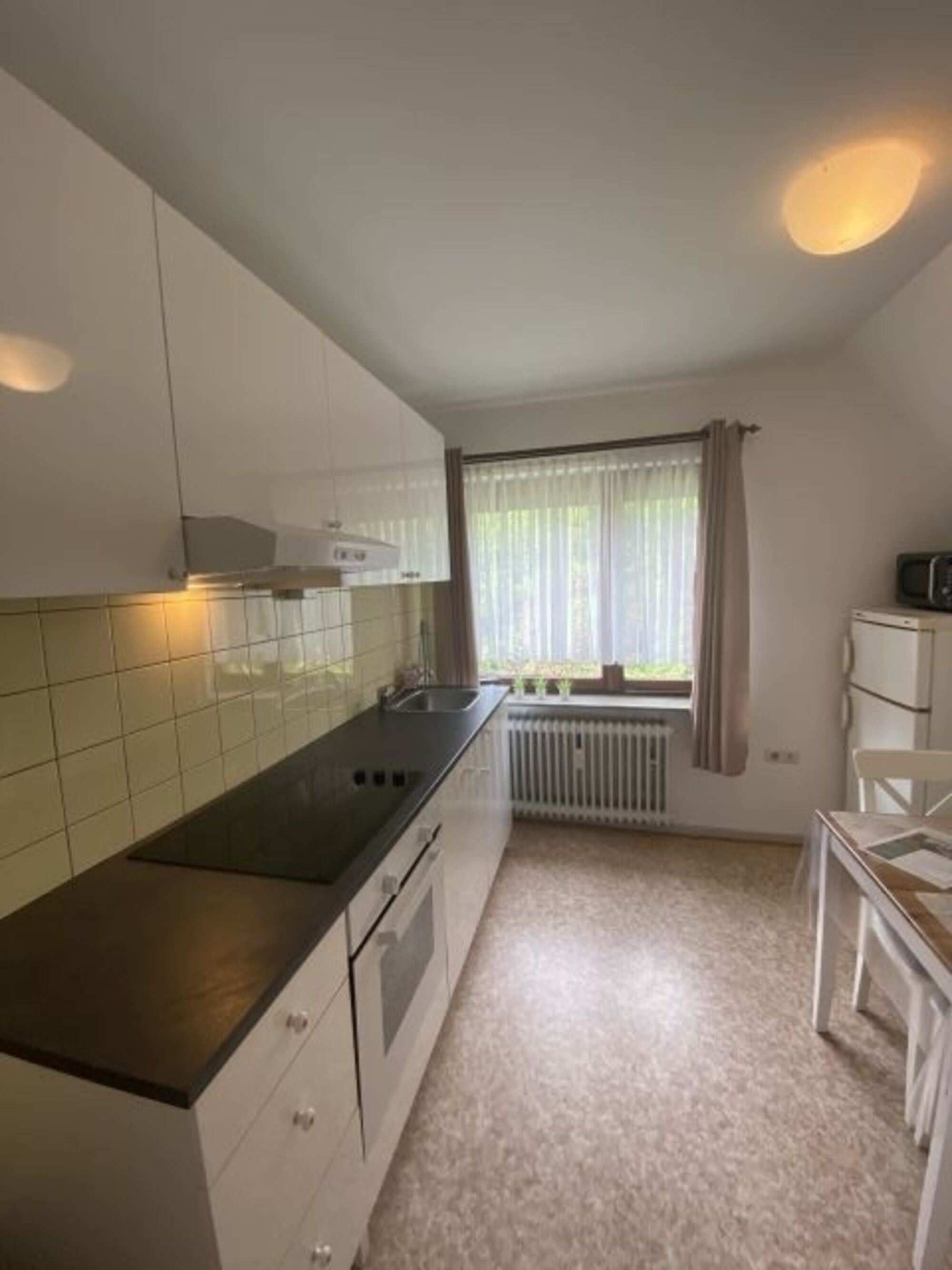 Cerankochfeld, Dunstabzugshaube, Kühlschrank mit Gefrierfach, Korkenzieher / Flaschenöffner, Geschirrhandtücher, Mülltüten, Essplatz in der Küche