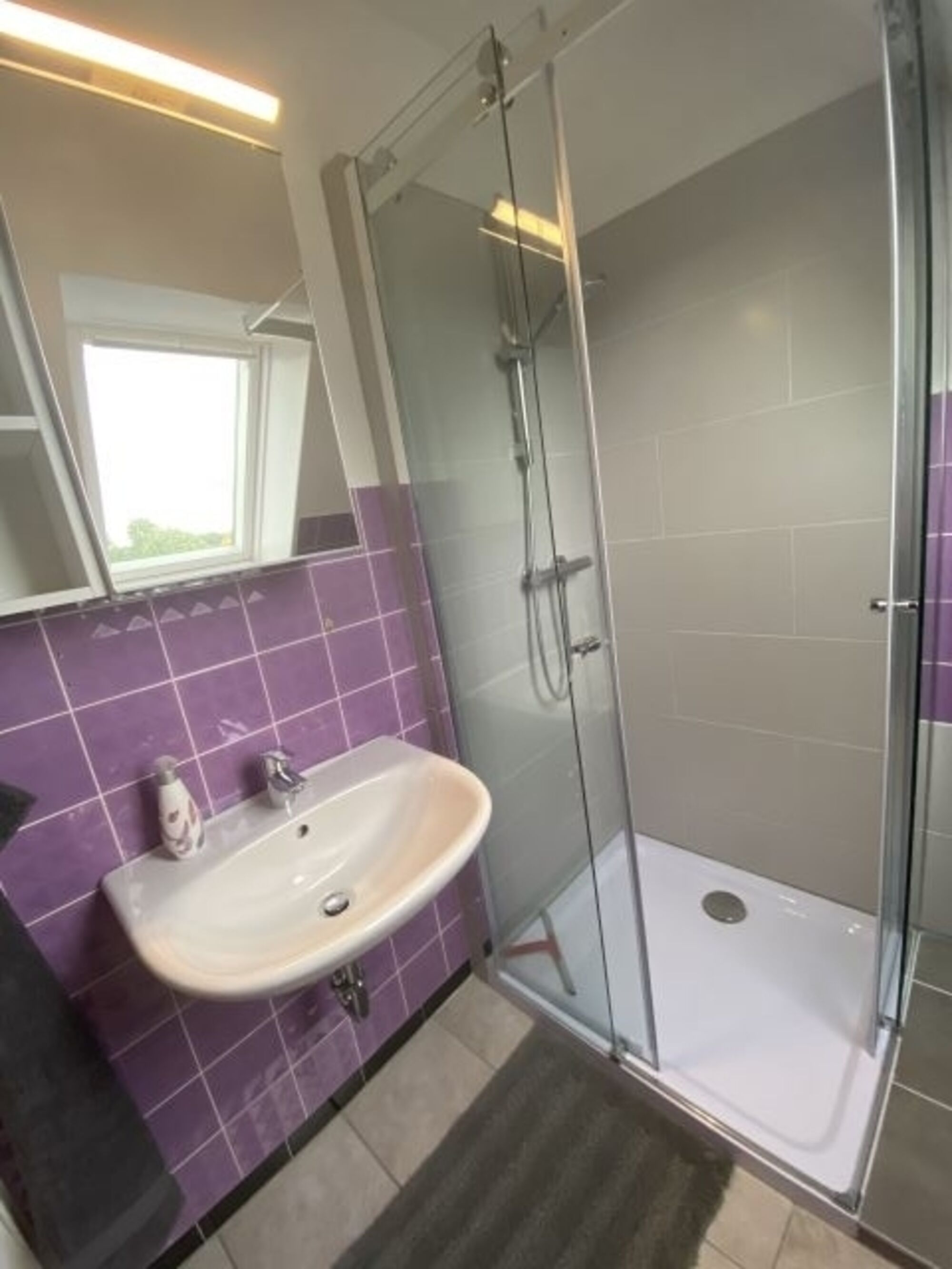 Bad: Dusche und WC, zusätzlich mit Waschmaschine ausgestattet.