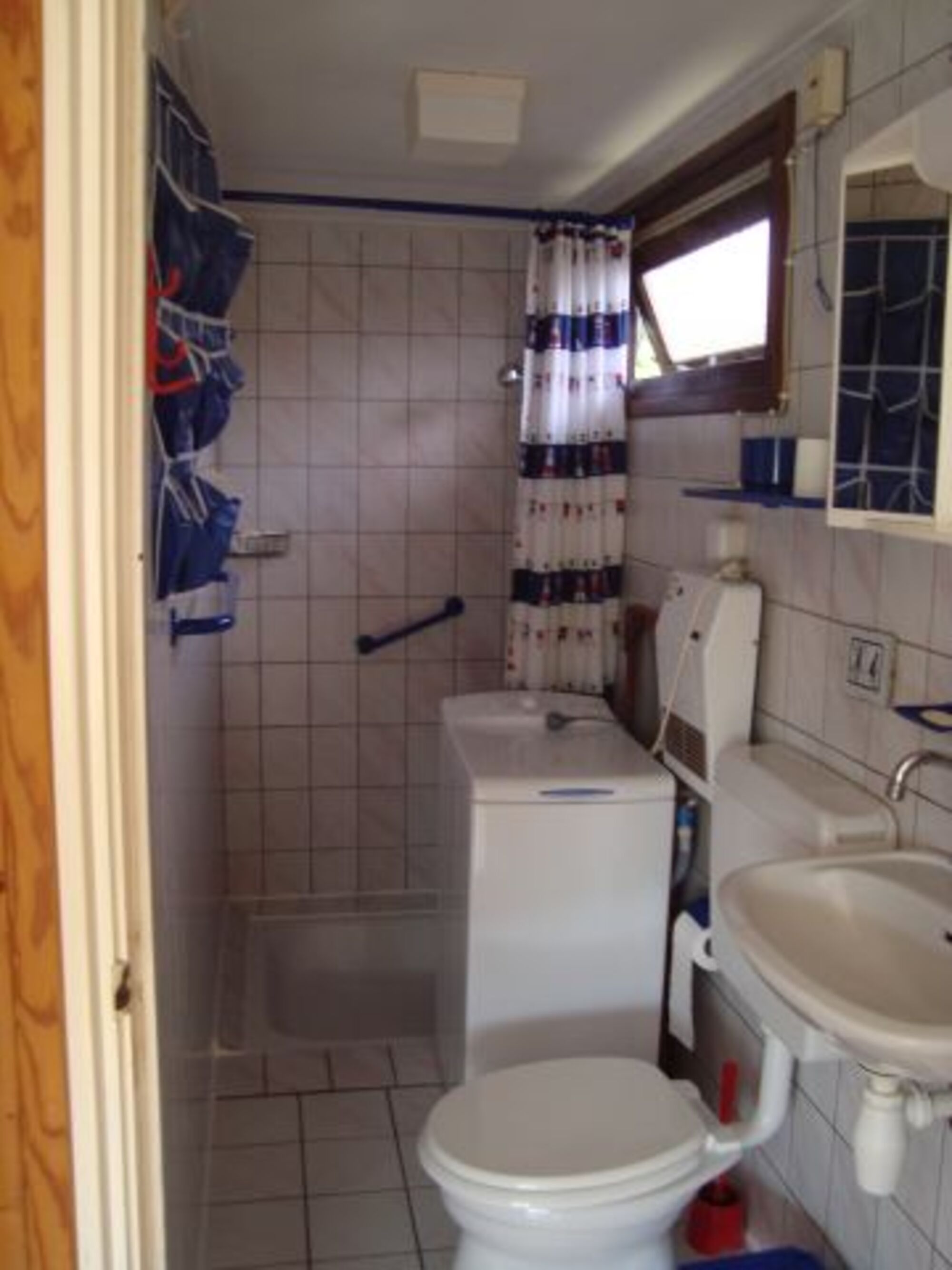 Waschbecken, Spiegel, Fenster im Bad, Fliegengitter